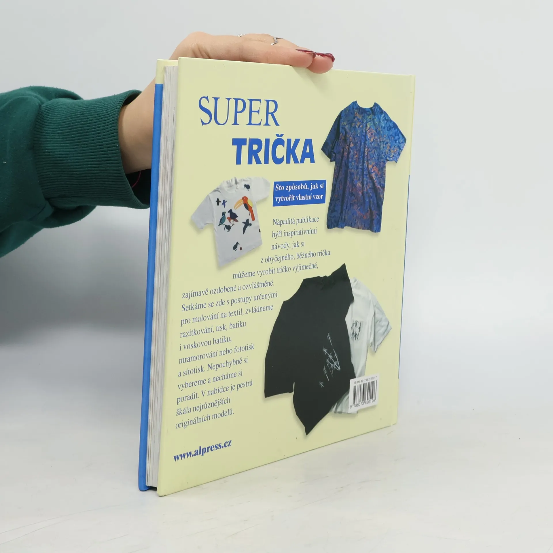 Nápaditá publikace hýří inspirativními návody, jak si z obyčejného trička můžeme vyrobit tričko výjimečné, zajímavě ozdobené a ozvláštněné. Setkáme se zde s postupy určenými pro malování na textil, zvládneme razítkování, tisk, batiku i voskovou batiku, mramorování nebo fototisk a sítotisk.