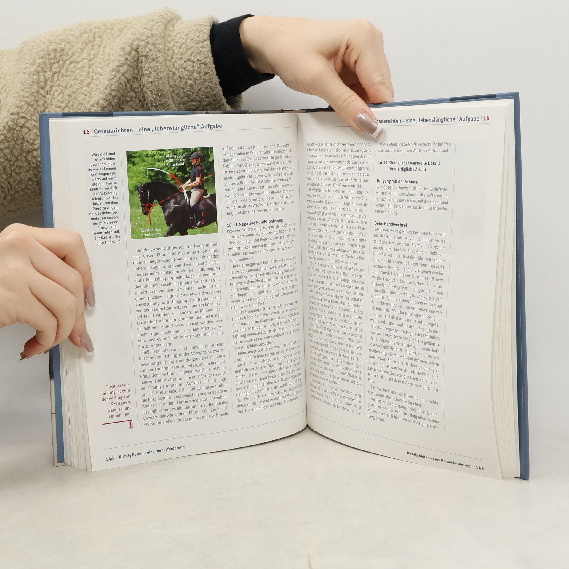 Richtig Reiten – eine Herausforderung ist eine Fortsetzung des Fachbestsellers „Reiten mit Verstand und Gefühl“ und bietet eine umfassende Sammlung von Lösungen für reiterliche Probleme. Es richtet sich an alle, die sich mit pferdegerechtem Reiten beschäftigen, und hilft, das tägliche Reiten zu optimieren. Ein zentraler Aspekt des Buches ist die Beziehung zwischen Reiter und Pferd, insbesondere auf mentaler Ebene. Es wird eindrucksvoll erklärt, wie Losgelassenheit bei beiden erreicht und erhalten werden kann, was die Grundlage für anspruchsvolle Anforderungen an das Pferd darstellt. Der Leser erfährt, wie er gemeinsam mit seinem Pferd den Ausbildungsweg bis zur Versammlung und Aufrichtung in vertrauensvoller Zusammenarbeit beschreiten kann. Ziel ist es, die Gehfreude, Leistungsbereitschaft und „Persönlichkeit“ des Pferdes zu bewahren und ein harmonisches Miteinander zu fördern. Der Inhalt umfasst ganzheitliche Betrachtungen von Sitz- und Hilfengebungsproblemen, die Bedeutung der Losgelassenheit für pferdegerechtes Reiten, den Umgang mit instinktbedingten Fehlern, die Rolle des Genicks, den Umgang mit Schiefe sowie den Aufbau von Trainingseinheiten und Merksätzen.