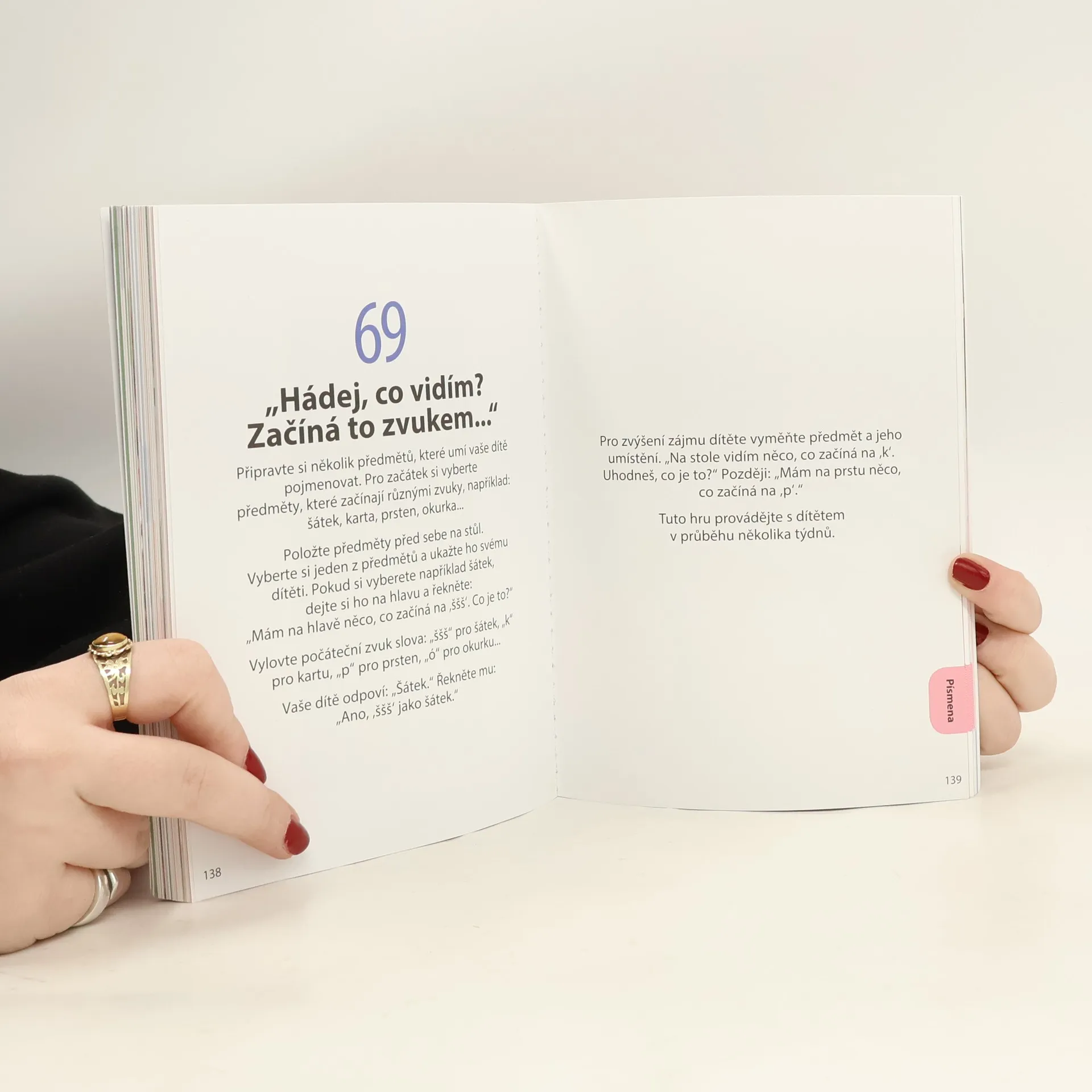 Různorodé aktivity od každodenních činností až po úkoly s jednoduchými pomůckami, které dítěti pomohou později lépe zvládnout čtení a psaní. Knížka představuje 100 různých aktivit, respektující zásady Montessori pedagogiky, a díky nim dítě získá znalosti, které mu později pomohou lépe zvládnout čtení a psaní. Vyberte si s dítětem z různorodých činností od každodenních prací až po aktivity s jednoduchými pomůckami. Získá tak nejen dovednosti potřebné k psaní a čtení, ale stane se samostatnějším, získá sebedůvěru a vztah ke knihám. Kniha se zaměřuje na děti ve věku od 3 do 6 let, neboť právě v tomto období si tyto znalosti osvojí nejsnáze. Aktivity přizpůsobte dítěti, protože jen vy dokážete odhadnout, které činnosti mu půjdou a na které je lépe počkat. V knize najdete také návod, jak si jednoduše vyrobit pomůcky, jako jsou hmatová písmena či pohyblivá abeceda.