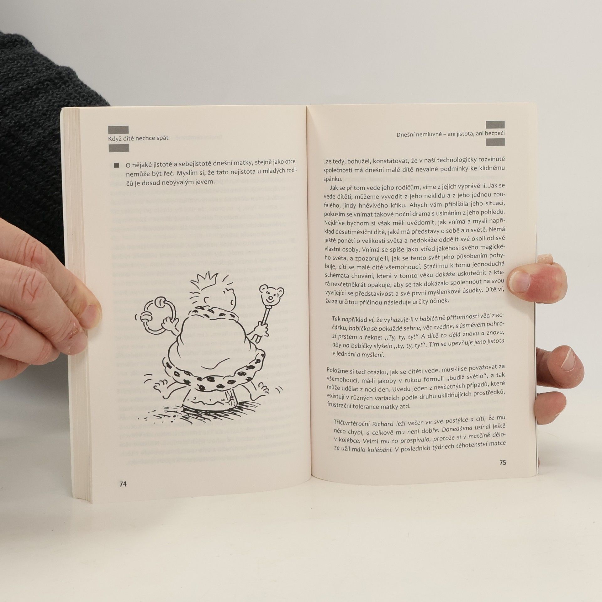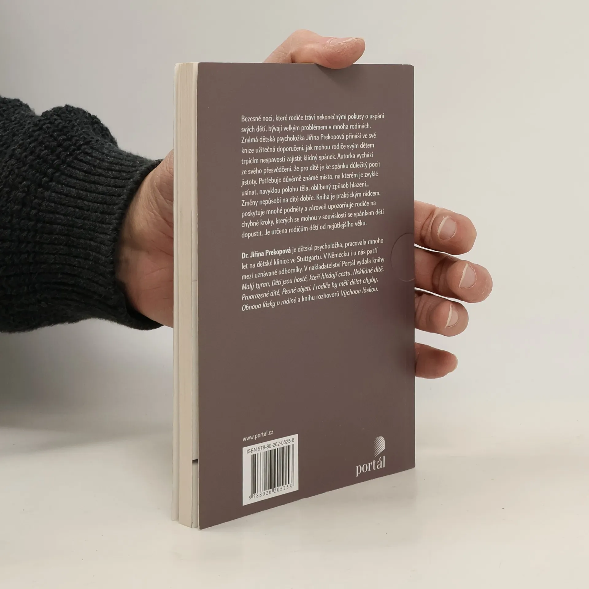 Bezesné noci, které rodiče tráví nekonečnými pokusy o uspání svých dětí, bývají velkým problémem v mnoha rodinách. Známá dětská psycholožka Jiřina Prekopová přináší ve své knize užitečná doporučení, jak mohou rodiče svým dětem trpícím nespavostí zajistit klidný spánek. Autorka vychází ze svého přesvědčení, že pro dítě je ke spánku důležitý pocit jistoty. Potřebuje důvěrně známé místo, na kterém je zvyklé usínat, navyklou polohu těla, oblíbený způsob hlazení… Změny na dítě nepůsobí dobře. Kniha je praktickým rádcem, poskytuje mnohé podněty a zároveň upozorňuje rodiče na chybné kroky, kterých se mohou v souvislosti se spánkem dětí dopustit. Je určena rodičům dětí od nejútlejšího věku.(Portál)