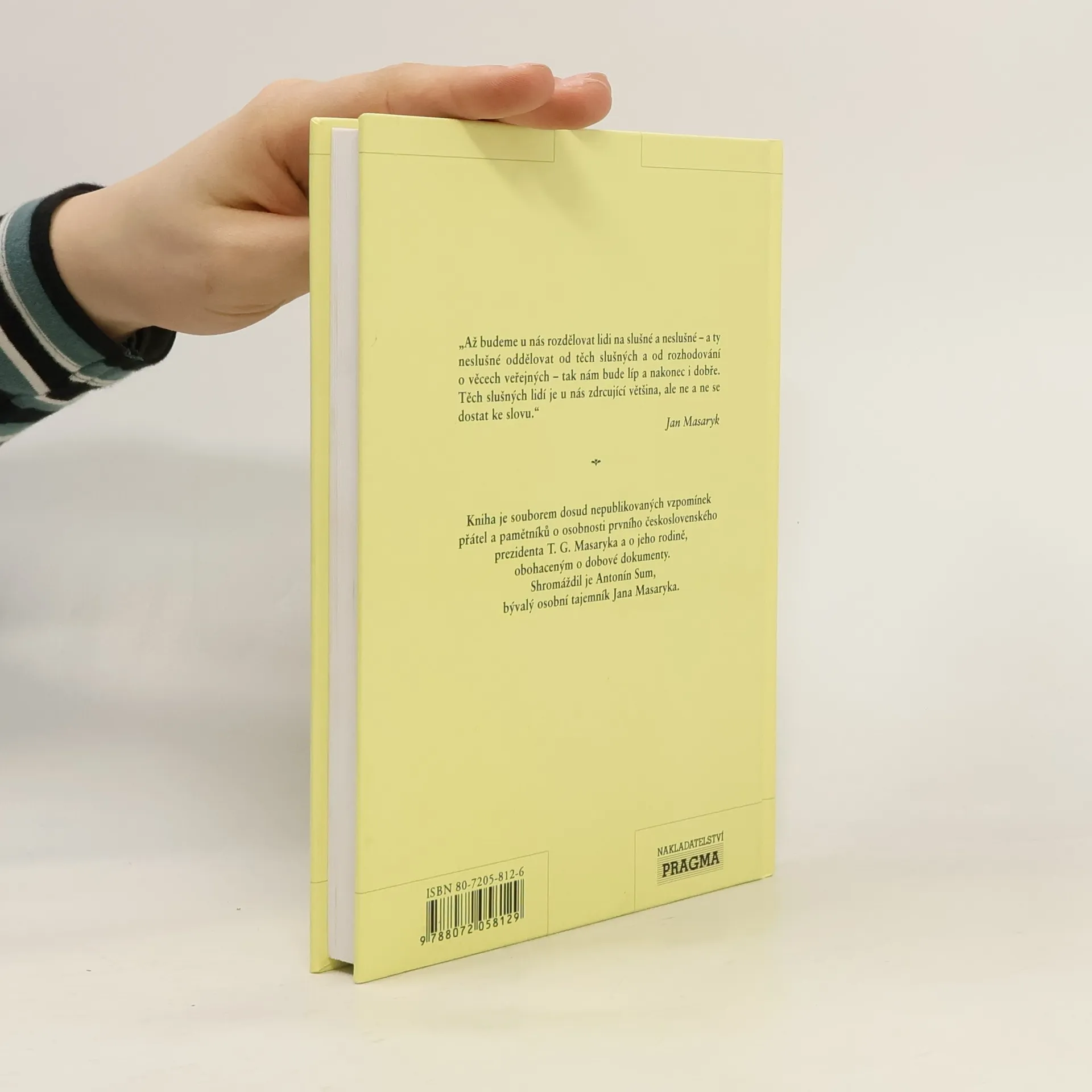 Kniha je souborem dosud nepublikovaných vzpomínek přátel a pamětníků o osobnosti prvního československého prezidenta T.G.Masaryka a o jeho rodině, obohaceným o dobové dokumenty. Shromáždil je Antonín Sum, bývalý osobní tajemník Jana Masaryka.