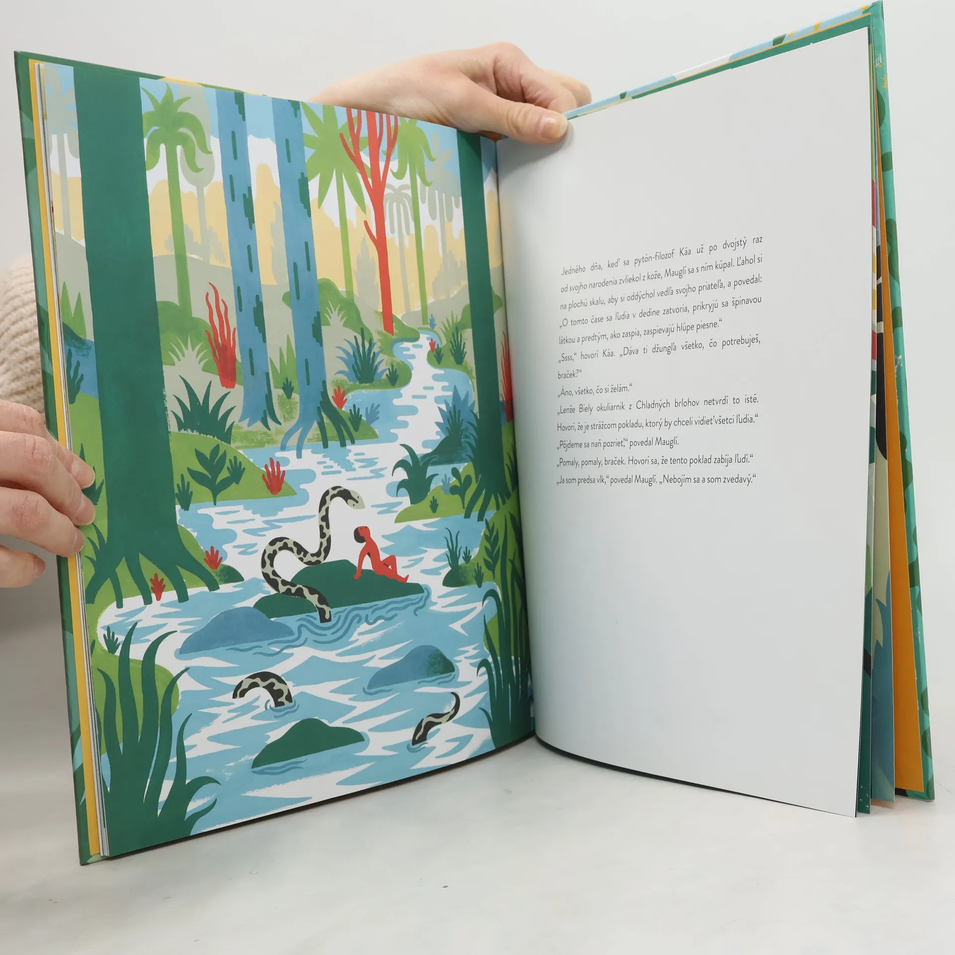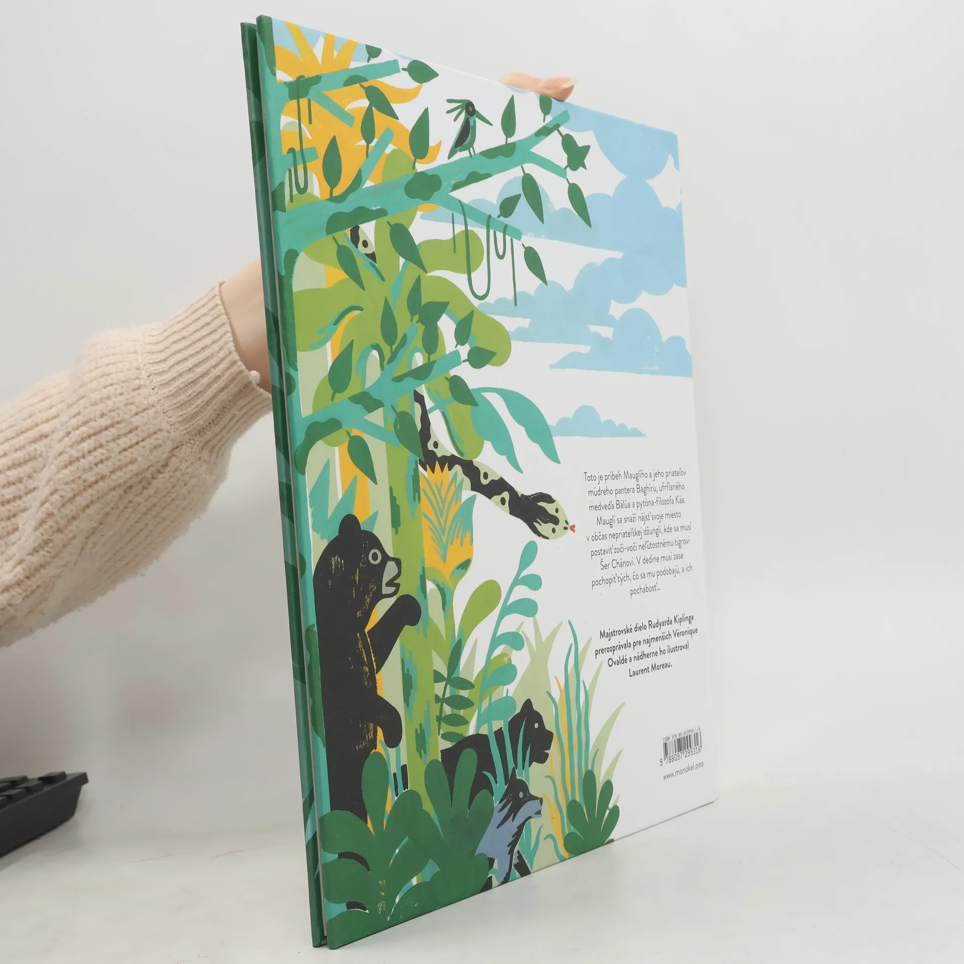 Toto je príbeh Mauglího a jeho priateľov múdreho pantera Baghíru, ufrflaného medveďa Bálúa a pytóna-filozofa Káa. Mauglí sa snaží nájsť svoje miesto v občas nepriateľskej džungli, kde sa musí postaviť zoči-voči neľútostnému tigrovi Šer Chánovi. V dedine musí zase pochopiť tých, čo sa mu podobajú, a ich pochabosť Majstrovské dielo Rudyarda Kiplinga prerozprávala pre najmenších Véronique Ovaldé a nádherne ho ilustroval Laurent Moreau.