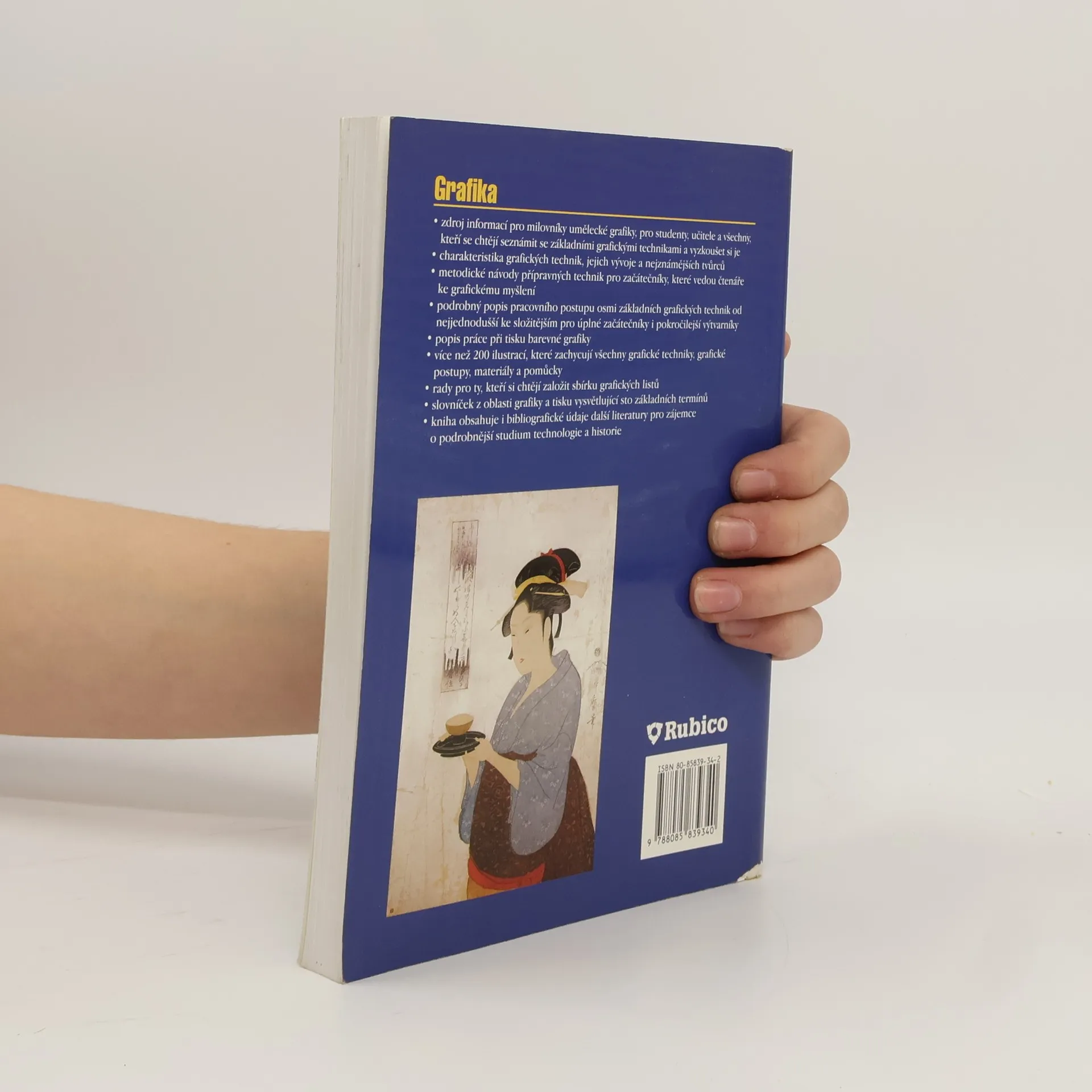 - zdroj informací pro milovníky umělecké grafiky, pro studenty i učitele - základní grafické techniky a jejich charakteristika - metodické návody přípravných technik pro začátečníky - podrobný popis pracovního postupu osmi základních grafických technik - více než 200 ilustrací, které zachycují všechny grafické techniky, grafické postupy, materiály a pomůcky - slovníček z oblasti grafiky a tisku vysvětlující sto základních termínů
