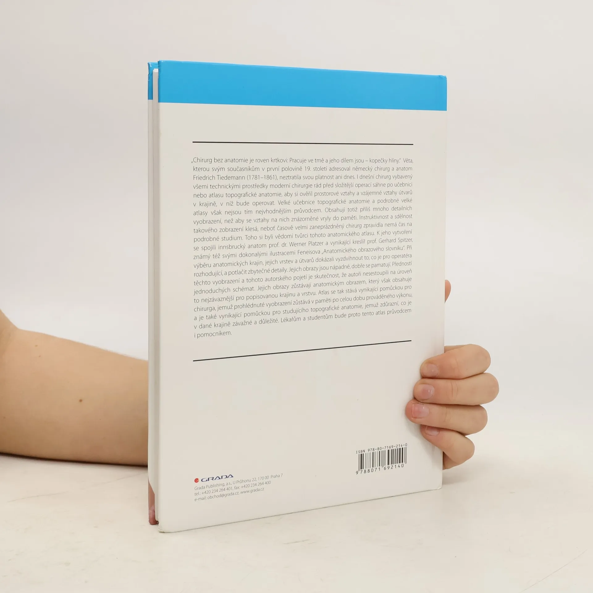 "Chirurg bez anatomie je roven krtkovi: pracuje ve tmě a jeho dílem jsou - kopečky hlíny". Tuto větu adresoval svým současníkům německý chirurg F. Tiedemann. Proto je tato celobarevná publikace nezbytnou pomůckou pro chirurga k ověření prostorových vztahů útvarů v krajině, v níž bude operovat. Na rozdíl od podrobných velkých učebnic a atlasů je tento atlas velice instruktivní a sdělný, neboť tvůrci knihy dokázali vyzdvihnout to, co je pro operatéra nezbytné. Kniha obsahuje 315 barevných a 115 černobílých obrázků.