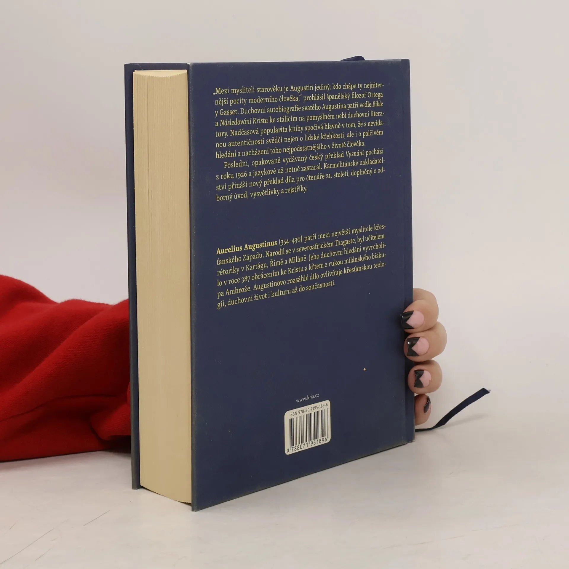 „Mezi mysliteli starověku je Augustin jediný, kdo chápe ty nejniternější pocity moderního člověka,“ prohlásil španělský filosof Ortega y Gasset. Duchovní autobiografie svatého Augustina patří vedle Bible a Následování Krista ke stálicím na pomyslném nebi duchovní literatury. Nadčasová popularita knihy spočívá hlavně v tom, že s nevídanou autentičností svědčí nejen o lidské křehkosti, ale i o palčivém hledání a nacházení toho nejpodstatnějšího v životě člověka. Poslední, opakovaně vydávaný český překlad Vyznání pochází z roku 1926 a jazykově už notně zastaral. Karmelitánské nakladatelství přináší nový překlad díla pro čtenáře 21. století, doplněný o odborný úvod, vysvětlivky a rejstříky.