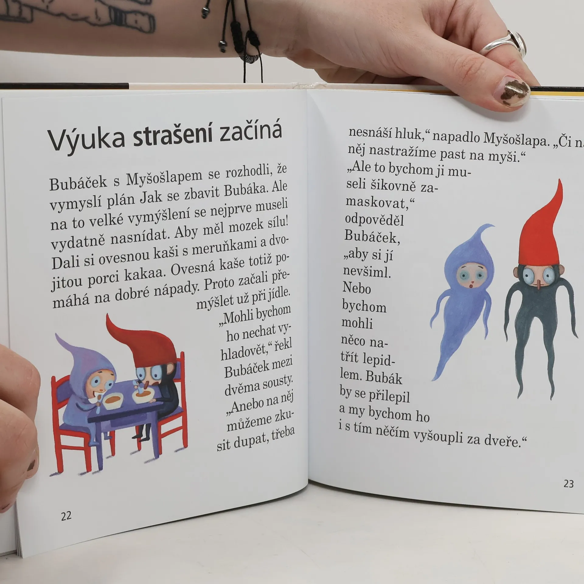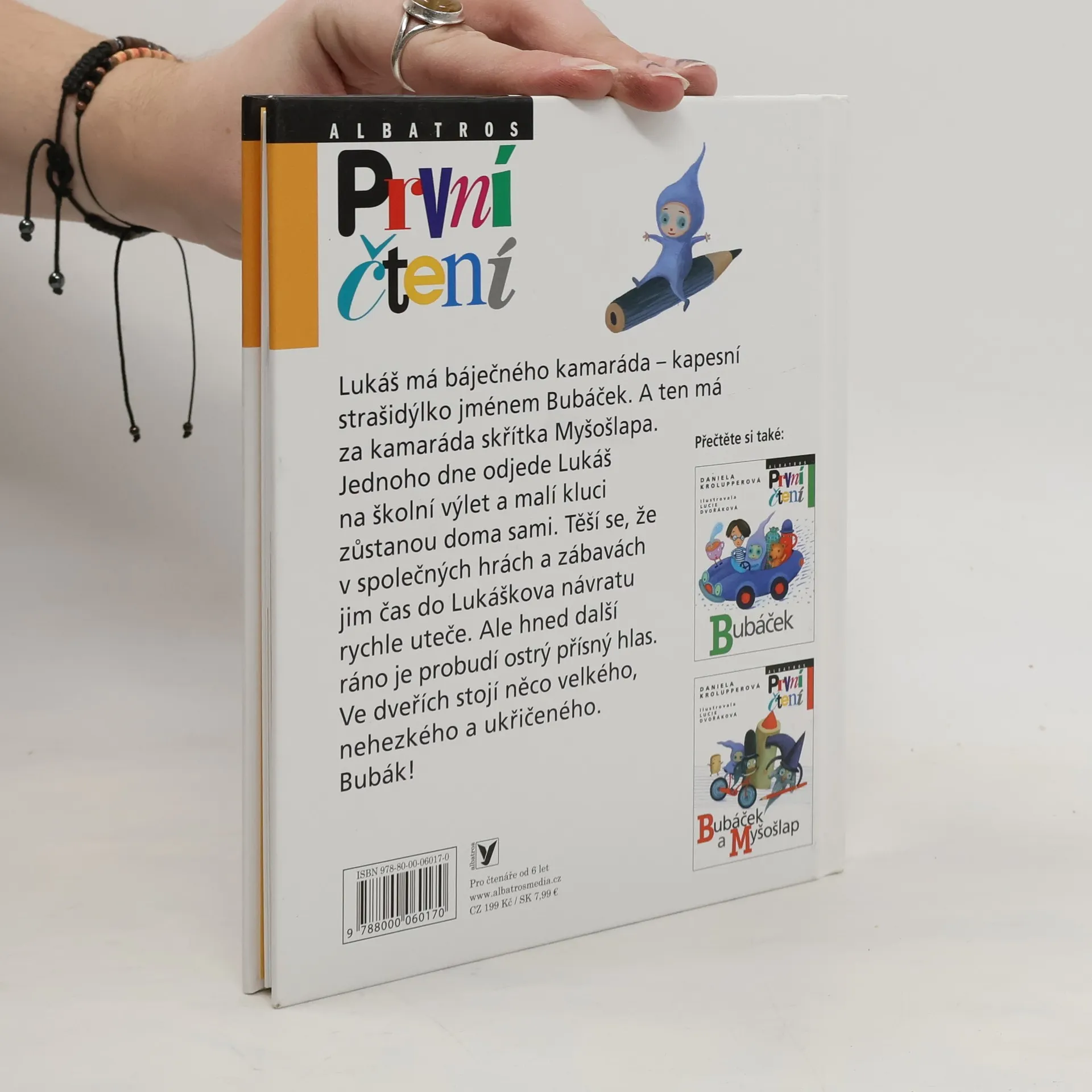 Lukáš má báječného kamaráda – kapesní strašidýlko jménem Bubáček. A ten má za kamaráda skřítka Myšošlapa. Jednoho dne odjede Lukáš na školní výlet a malí kluci zůstanou doma sami. Těší se, že v společných hrách a zábavách jim čas do Lukáškova návratu rychle uteče. Ale hned další ráno je probudí ostrý přísný hlas. Ve dveřích stojí něco velkého, nehezkého a ukřičeného. Bubák!