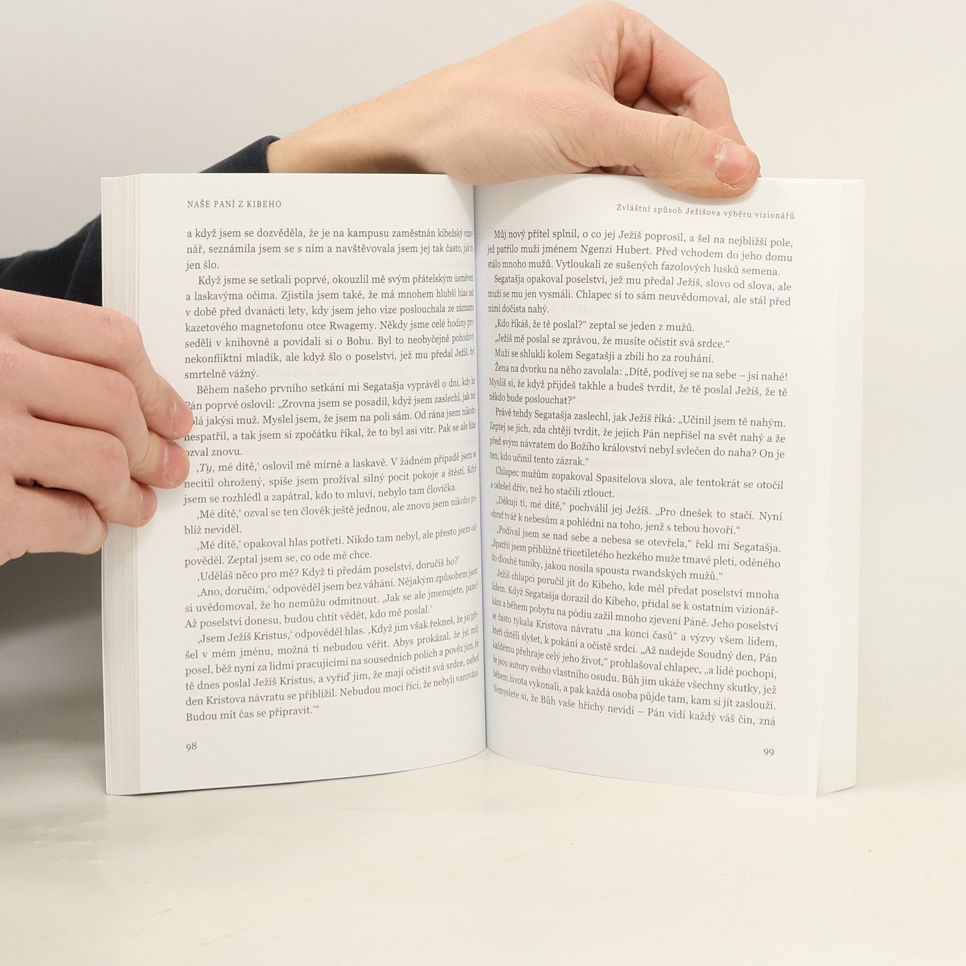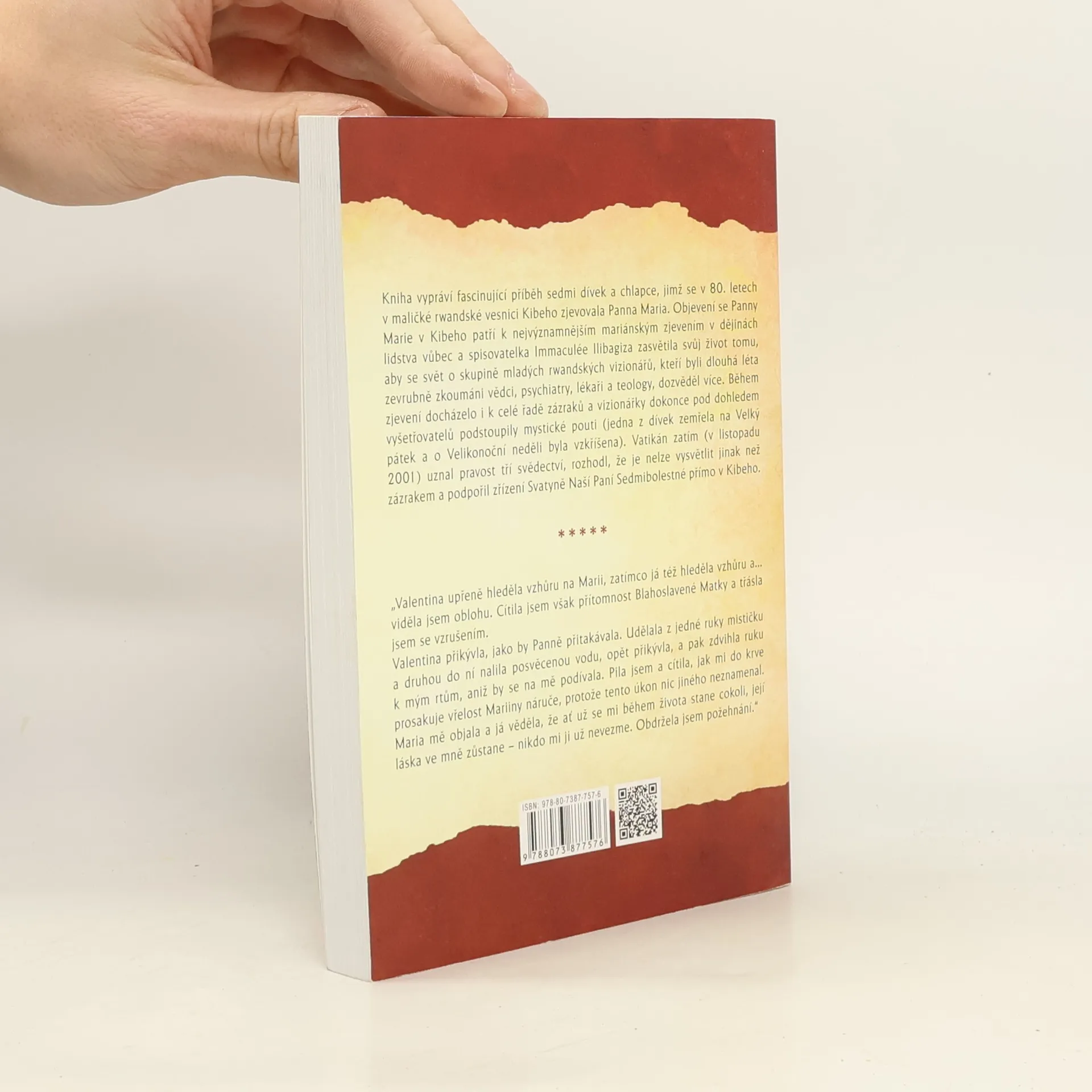 Kniha vypráví fascinující příběh sedmi dívek a chlapce, jimž se v 80. letech v maličké rwandské vesnici Kibeho zjevovala Panna Maria. Objevení se Panny Marie v Kibeho patří k nejvýznamnějším mariánským zjevením v dějinách lidstva vůbec a spisovatelka Immaculée Ilibagiza zasvětila svůj život tomu, aby se svět o skupině mladých rwandských vizionářů, kteří byli dlouhá léta zevrubně zkoumáni vědci, psychiatry, lékaři a teology, dozvěděl více. Během zjevení docházelo i k celé řadě zázraků a vizionářky dokonce pod dohledem vyšetřovatelů podstoupily mystické pouti (jedna z dívek zemřela na Velký pátek a o Velikonoční neděli byla vzkříšena). Vatikán zatím (v listopadu 2001) uznal pravost tří svědectví, rozhodl, že je nelze vysvětlit jinak než zázrakem a podpořil zřízení Svatyně Naší Paní Sedmibolestné přímo v Kibeho.