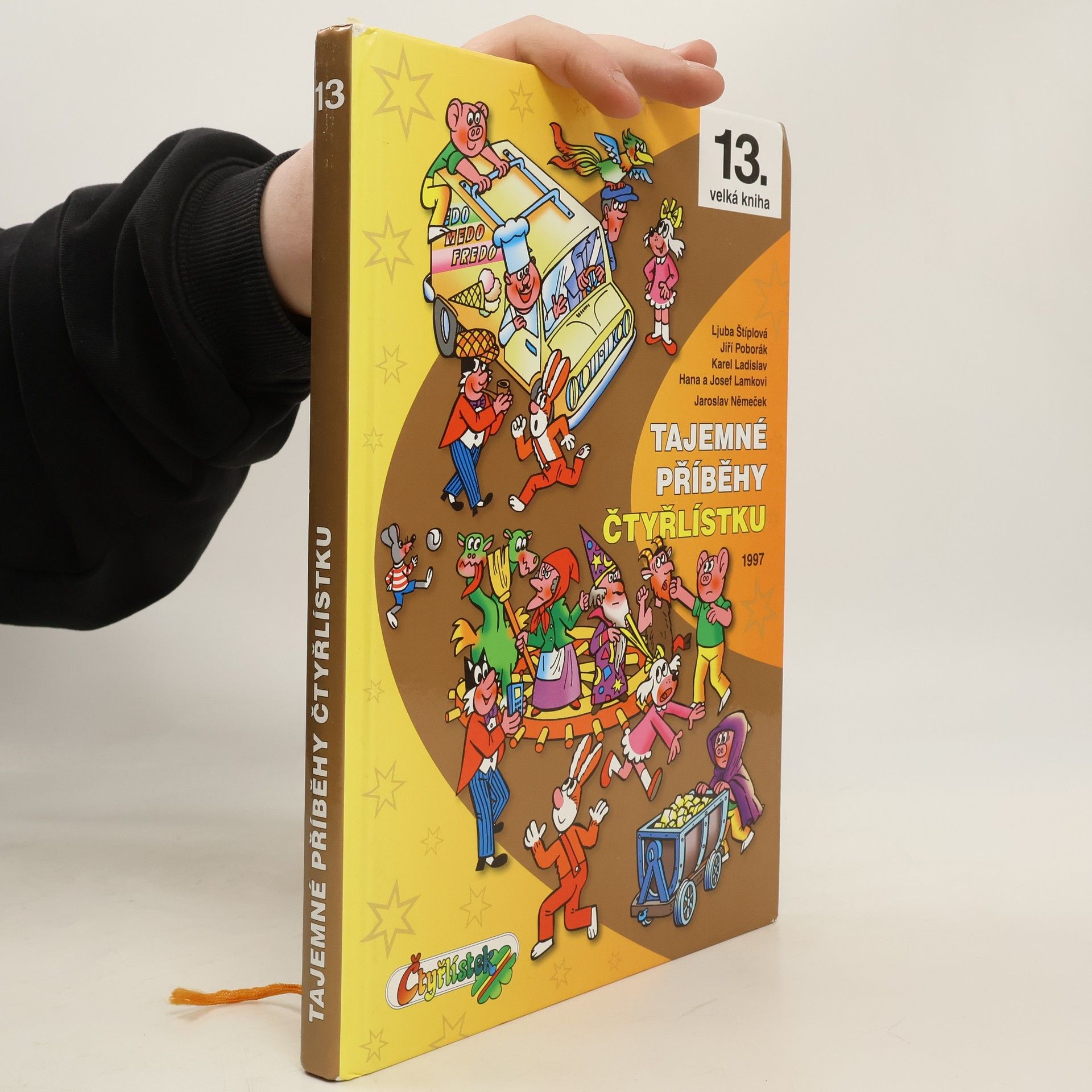 Velká kniha příběhů Čtyřlístků z roku 1997. Třináctá souborná kniha se tentokrát jmenuje Tajemné příběhy Čtyřlístku, a jak už název říká, setkáte se v ní s příběhy opravdu neobyčejnými. Tak například málokdo z vás slyšel o tajemných tvorečcích Čivižnících, o nezvyklém způsobu, jak dosáhnout mistrovství v krasobruslení, nebo o podzemí starého opatství, ve kterém ubozí zakuklenci dolují zlato, o setkání s pověstným Bludným Holanďanem, vodníkem nebo čerty…