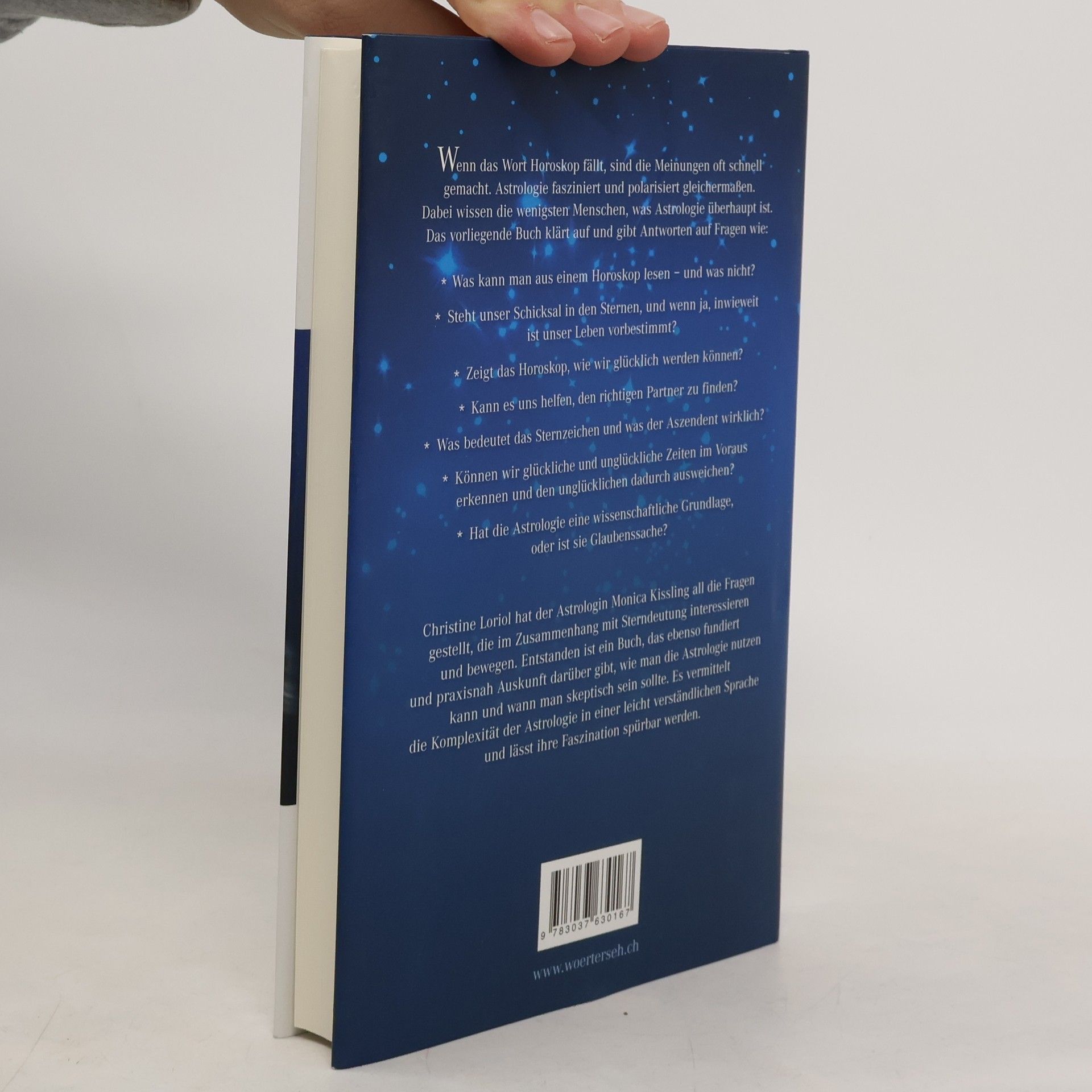 Wenn das Wort Horoskop fällt, sind die Meinungen oft schnell gemacht. Astrologie fasziniert und polarisiert gleichermaßen. Dabei wissen die wenigsten Menschen, was Astrologie überhaupt ist. Das vorliegende Buch klärt auf und gibt Antworten auf Fragen wie: Was kann man aus einem Horoskop lesen – und was nicht? Steht unser Schicksal in den Sternen, und wenn ja, in wie weit ist unser Leben vorbestimmt? Zeigt das Horoskop, wie wir glücklich werden können? Kann es uns helfen, den richtigen Partner zu finden? Was bedeutet das Sternzeichen und was der Aszendent wirklich? Können wir glückliche und unglückliche Zeiten im Voraus erkennen? Und den unglücklichen dadurch ausweichen? Hat die Astrologie eine wissenschaftliche Grundlage, oder ist sie Glaubenssache? Die Journalistin Christine Loriol hat der Astrologin Monica Kissling all die Fragen gestellt, die im Zusammenhang mit Sterndeutung interessieren und bewegen. Entstanden ist ein Buch, das ebenso fundiert und praxisnah Auskunft darüber gibt, wie man die Astrologie nutzen kann und wann man skeptisch sein sollte. Es vermittelt die Komplexität der Astrologie in einer leicht verständlichen Sprache und lässt ihre Faszination spürbar werden.