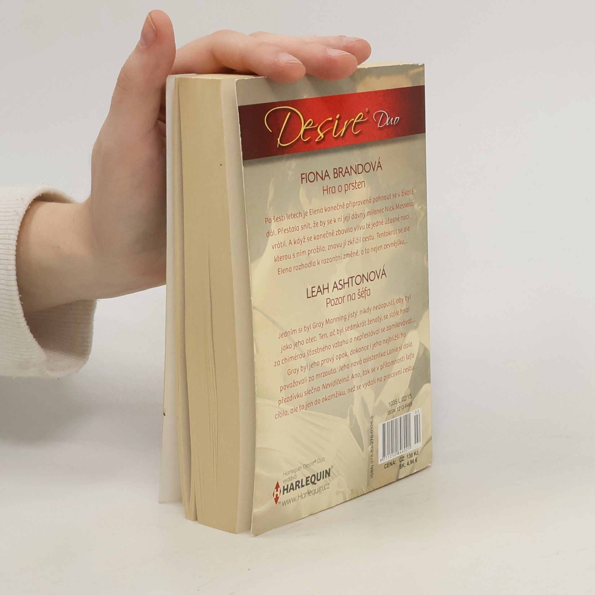 HRA O PRSTEN (série The Pearl House 5) - Fiona Brandová Po šesti letech je Elena konečně připravená pohnout se v životě dál. Přestala snít, že by se k ní její dávný milenec Nick Messena vrátil. A když se konečně zbavila vlivu té jedné úžasné noci, kterou s ním prožila, znovu jí zkřížil cestu. Tentokrát se ale Elena rozhodla k razantní změně, a to nejen zevnějšku… POZOR NA ŠÉFA - Leah Ashtonová Jedním si byl Gray Manning jistý: nikdy nedopustí, aby byl jako jeho otec. Ten, ač byl sedmkrát ženatý, se stále hnal za chimérou šťastného vztahu a nepřestával se zamilovávat… Gray byl jeho pravý opak, dokonce ho i jeho nejbližší považovali za mrzouta. Jeho nová asistentka Lanie si dala přezdívku slečna Neviditelná. Ano, tak se v přítomnosti šéfa cítila, ale to jen do okamžiku, než se vydali na pracovní cestu…