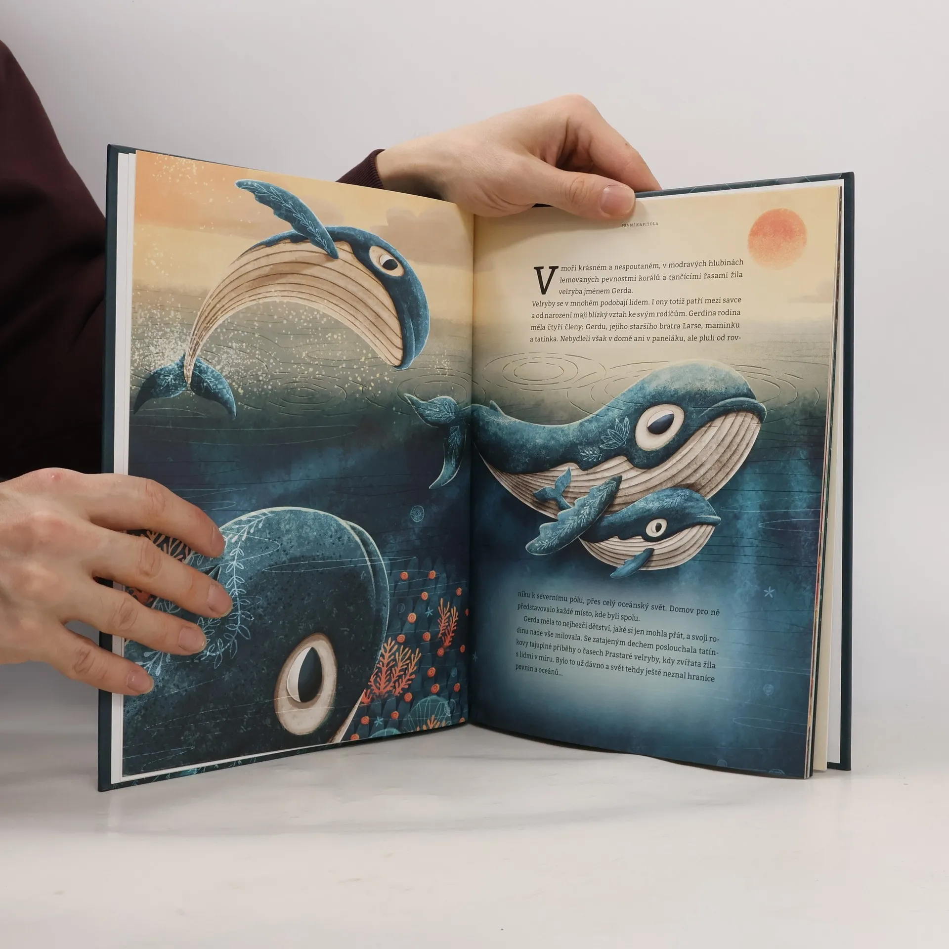 Laskavé vyprávění o podmořském světě s působivými ilustracemi. Malá velryba Gerda si užívá spokojené dětství. Jednou se však přihodí něco nečekaného a Gerda zůstane sama, bez rodiny. A tak osamocená a smutná bloudí oceánem, až nakonec potká nové přátele. Kosatky, tučňáky, racky nebo třeba chobotnice. Od každého kamaráda se dozví nejen zajímavosti o jejich životě, ale především o fascinujícím světě, kterým proplouvá. Najde nakonec malá Gerda to, co hledá?