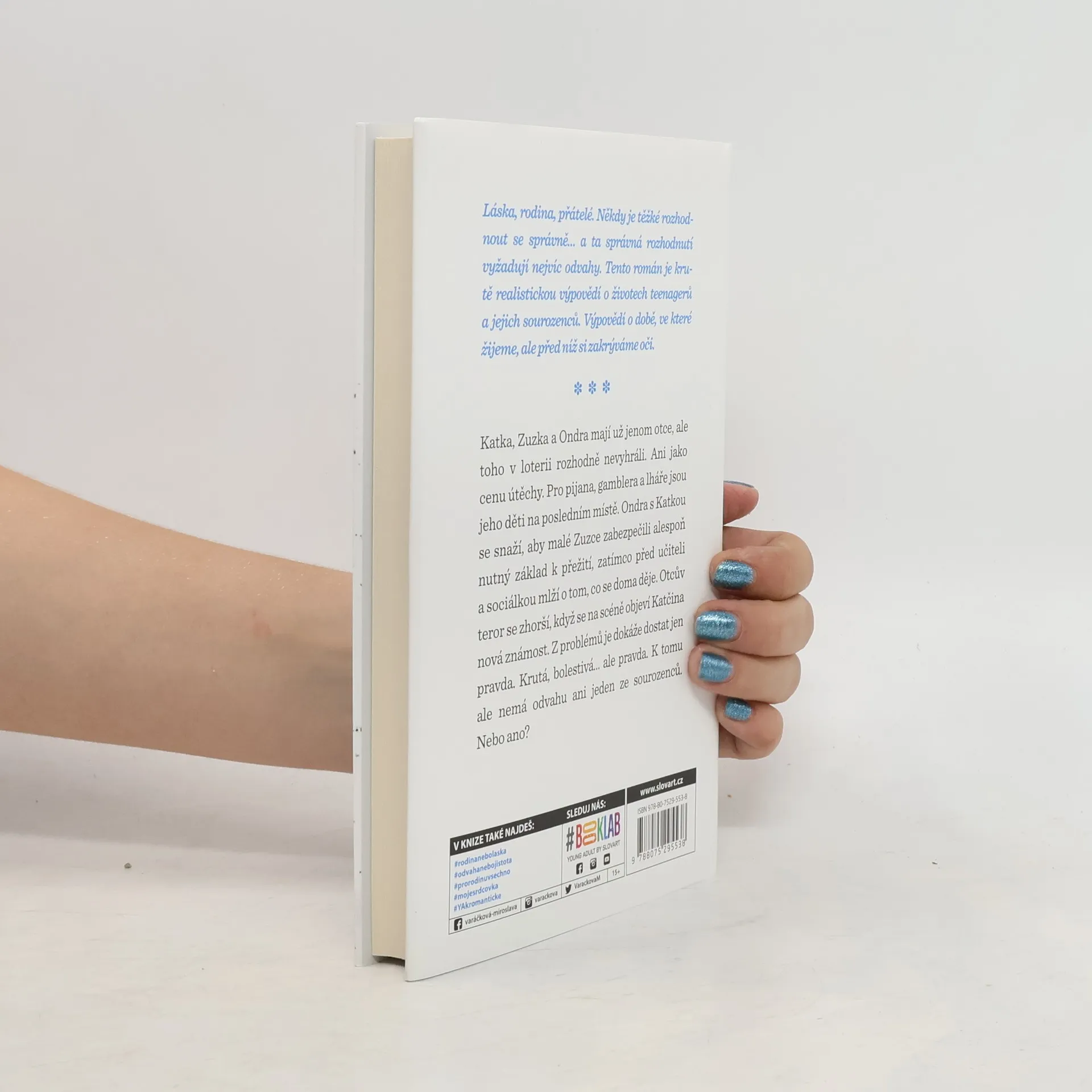 Správná rozhodnutí vyžadují nejvíc odvahy. Kačka, Zuzka a Ondra mají už jen otce, ale toho v loterii nevyhráli. Ani jako cenu útěchy. Pro pijana, gamblera a lháře jsou děti na posledním místě. Ondra s Katkou se snaží, aby malé Zuzce zabezpečili alespoň nejnutnější základ pro přežití, navíc musí před učiteli a sociálkou mlžit o tom, co se doma děje. Otcův teror se zhorší, když na scénu přichází Katčin nový objev. Zdá se, že z problémů je dokáže dostat jen pravda. Krutá, bolestivá… ale pravda. K tomu však ani jeden ze sourozenců nenachází odvahu. Nebo ano? Dívat se na svět skrz růžové brýle a zavírat oči před mnohdy nepříjemnou skutečností je velmi lehké. To ale rozhodně neplatí o novém románu Miroslavy Varáčkové. Miroslava Varáčková má doma tři chlapy a psa. Když je ráno vypraví do práce a do školy, odpluje ke klávesnici počítače a do světa fantazie. Každá její nová kniha je totiž cestou, na kterou se se svými hrdinkami vypraví. Jejich cíl není nikdy jasný, ten objevují společně a jejich zážitky formují nejen Mirku, ale i její hrdinky.