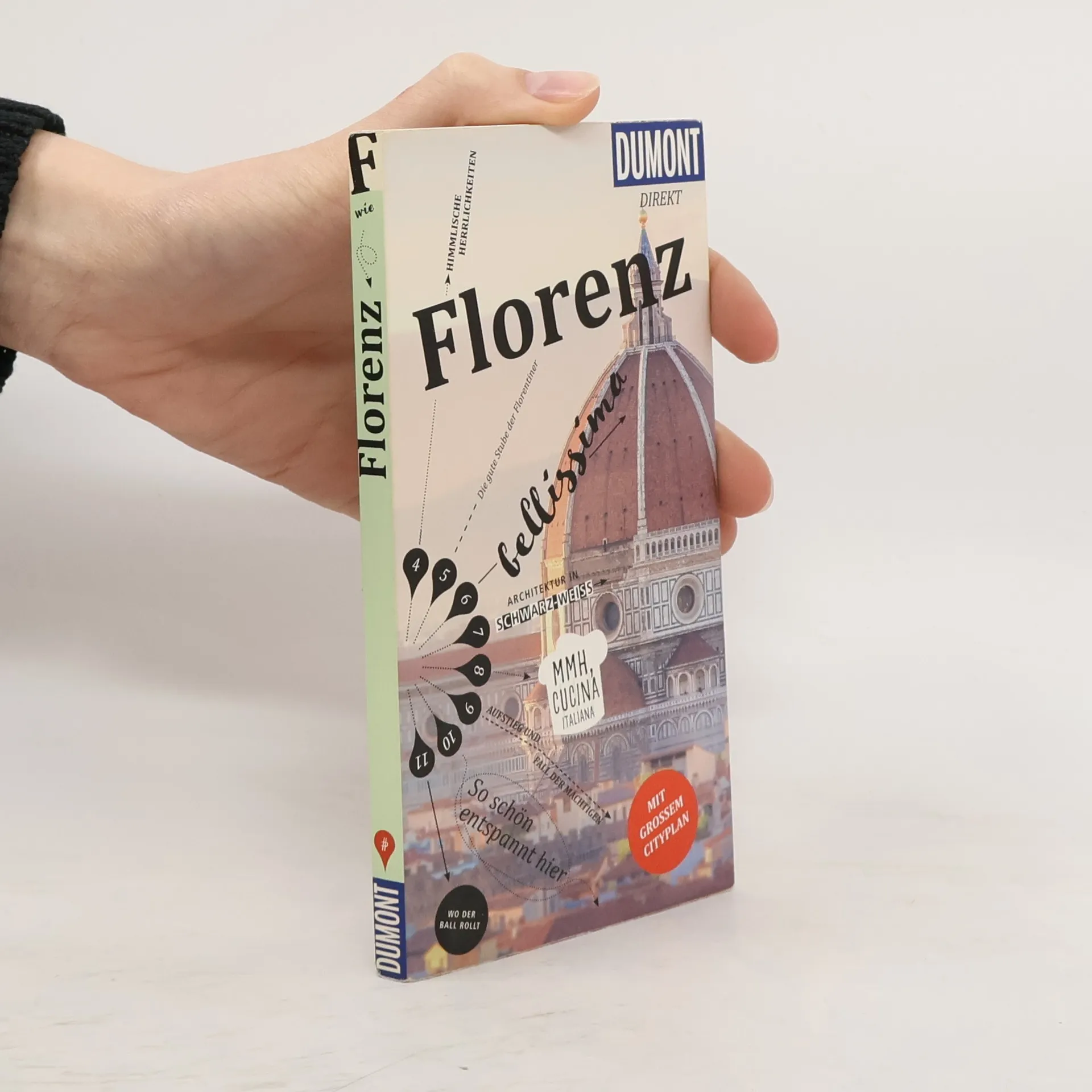 Bellissima, eine schöne Italienerin ist die Stadt, in der die Florentiner leben, voller Wunderwerke der Renaissance, reich an Palästen, Kunst und Kirchen. Mit den 15 »Direkt- Kapiteln« des Reiseführers von Michaela Namuth können Sie sich zwanglos unter die Florentiner mischen, direkt in das Stadtleben eintauchen und die Highlights und Hotspots kennenlernen: alte und neue Trendviertel, die Uffizien und den Ponte Vecchio, die Welt der Medici oder das Viertel der Kunsthandwerker, schwarz-weiße Marmorfassaden oder die Boboli-Gärten, Mode von Gucci bis Pucci, das Schlaraffenland im Mercato Centrale oder spannende Museen. In eigenen Kapiteln erfahren Sie, wo es sich in fremden Betten gut schläft, wo Sie glücklich satt werden, wohin die Florentiner zum Stöbern und Entdecken gehen und wohin es sie zieht, wenn die Nacht beginnt. Mit den Übersichtskarten, genauen Stadtteilplänen und dem separaten großen Cityplan können Sie sich nach Lust und Laune durch die Stadt treiben lassen.