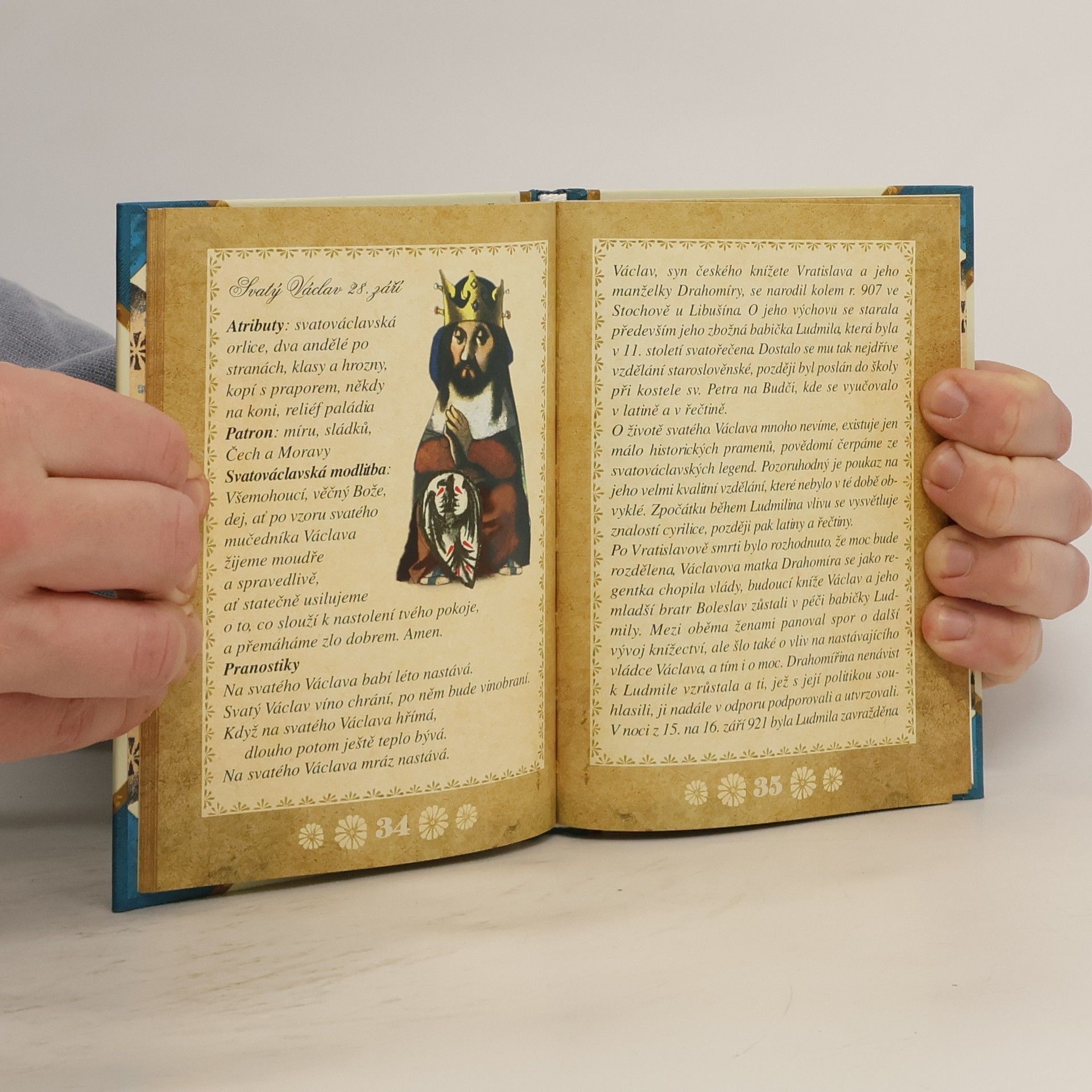 V knize najdeme kromě dat každý den i jména, která původně většinou patřila světcům, historicky doloženým nebo zčásti smyšleným postavám. Uváděný den bývá dnem jejich smrti, zřídka narození, někdy je spojen i s nějakým příběhem. Pozorováním počasí vznikaly nejen pranostiky svázané se svátkem příslušného svatého, ale také legendy ze světcova života, které se předávaly vyprávěním. S počasím a s ročními obdobími jsou ale svázány i některé pověsti zcela vymyšlené. Tyto příběhy, sebrané do malého svazku, jsou doplněny ilustracemi Jiřího Trnky.