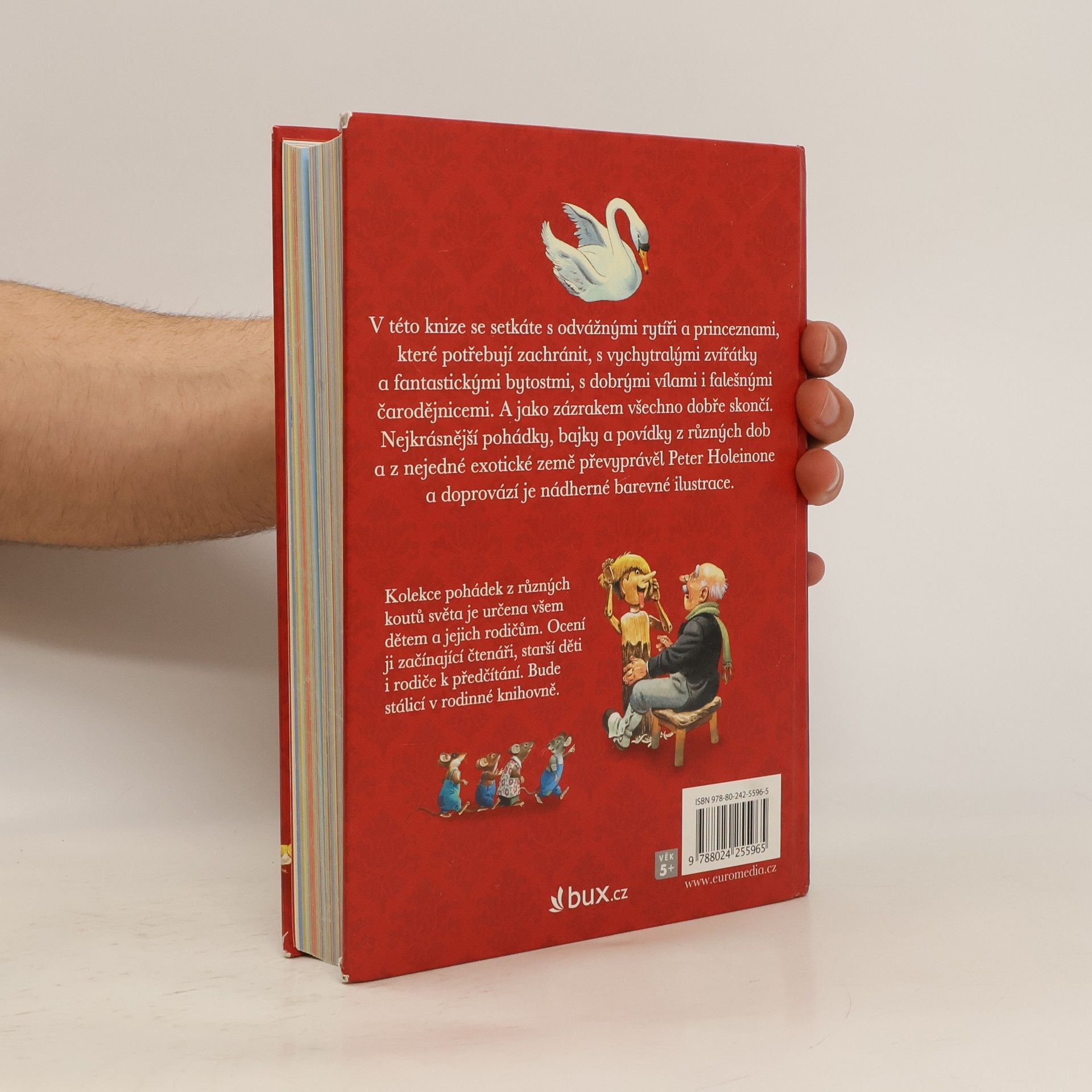 Pohádky, bajky, povídky. V této knize se setkáte s odvážnými rytíři a princeznami, které potřebují zachránit, s vychytralými zvířátky a fantastickými bytostmi, s dobrými vílami i falešnými čarodějnicemi. A jako zázrakem všechno dobře skončí. Nejkrásnější pohádky, bajky a povídky z různých dob a z nejedné exotické země převyprávěl Peter Holeinone a doprovází je nádherné barevné ilustrace. Kolekce pohádek z různých koutů světa je určena všem dětem a jejich rodičům. Ocení ji začínající čtenáři, starší děti i rodiče k předčítání. Budou stálicí v rodinné knihovně.
