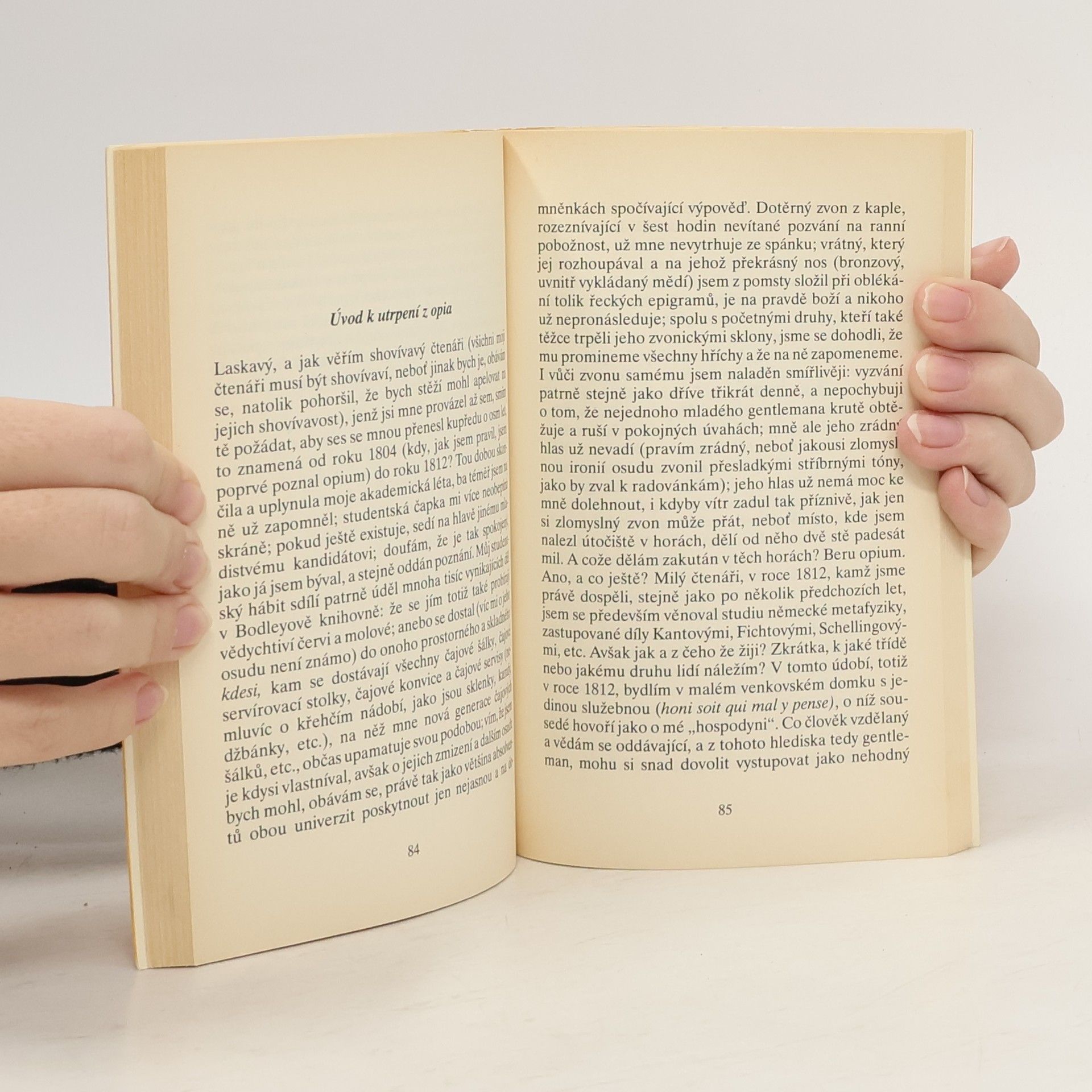 Opiová zpověď T. De Quinceyho se po mnoha stránkách vymyká běžné memoárové literatuře, na jakou byli angličtí čtenáři z počátku devatenáctého století zvyklí. Opium mu otevřelo „bránu rajských rozkoší“, svět úchvatných vizí, snů a fantastických smyslových vjemů, jen aby ho vzápětí uvrhlo do propastného utrpení fyzického i duševního. Jde o pozoruhodné vylíčení psychedelické zkušenosti, a to půldruhého století před „klasiky“ 60. let. Vyd. v tomto překladu 1.