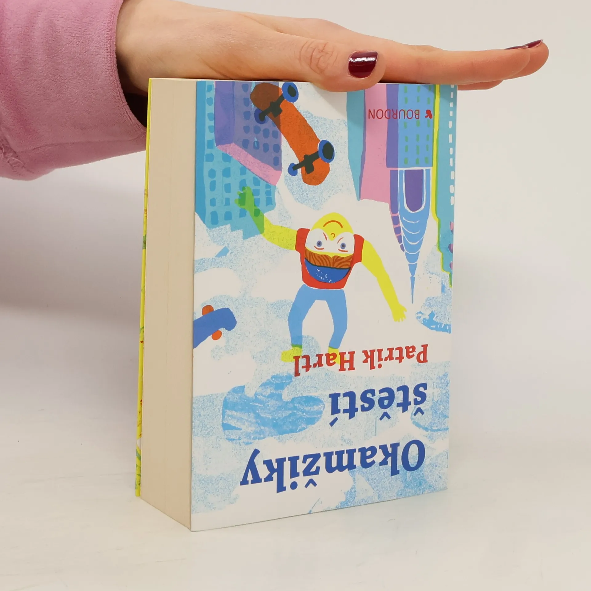 Nový dvojromán Patrika Hartla je možné začít číst z kterékoli strany. Vyberte si! Příběh sourozenců Veroniky a Jáchyma budete prožívat podle toho, který začátek zvolíte. Buďto do života skočíte jako Jáchym volným pádem z výšky čtyř tisíc metrů nebo se jako Veronika budete statečně prokousávat citovými nástrahami ode dne ke dni. Prožijete dva příběhy v jednom. Jako on a jako ona. Nebo v opačném pořadí, což bude překvapivě jiné, než byste očekávali... Můžete s nimi hledat štěstí, doufat, věřit, dělat chyby a napravovat je. Budete se o ně bát, fandit jim a zamilovávat se s nimi. A nejenom s nimi. Taky s Eliškou, Kubou, Dedém, Monikou, Viktorem, Amy, Kryštofem, Danou, Viki a Ondřejem. Protože štěstí a lásku hledá každý. I když to zní jako fráze.