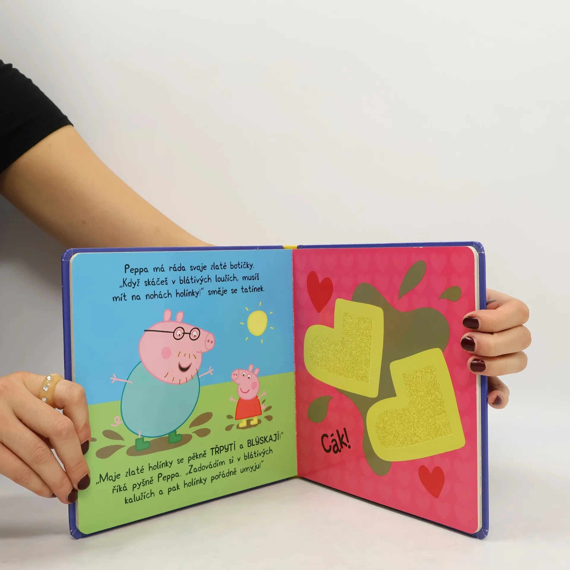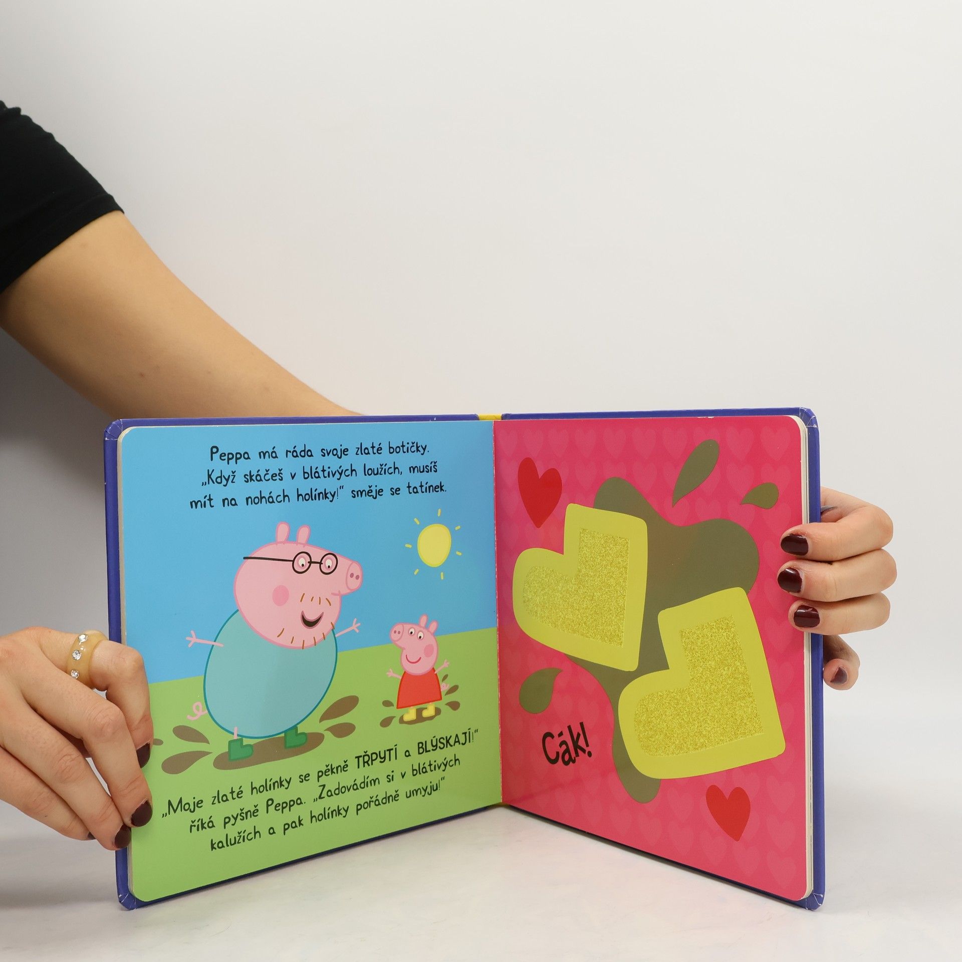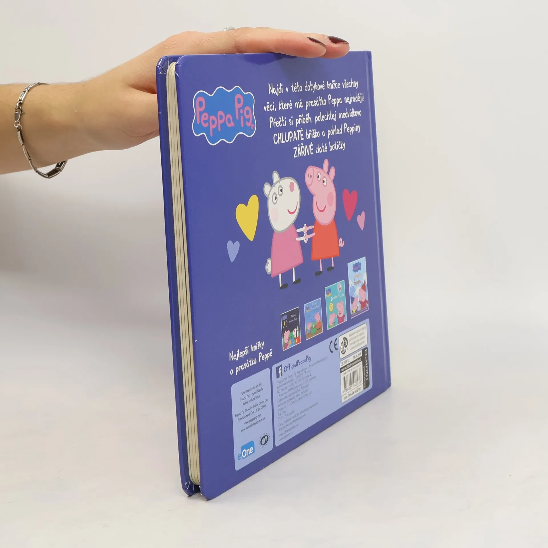 Hravá knížka pro malé prstíčky (Dotyková knížka) Najdi v této dotykové knížce všechny věci, která má prasátko Peppa nejraději! Přečti si příběh, polechtej medvídkovo chlupaté bříško a pohlaď Peppiny zářivé zlaté botičky!