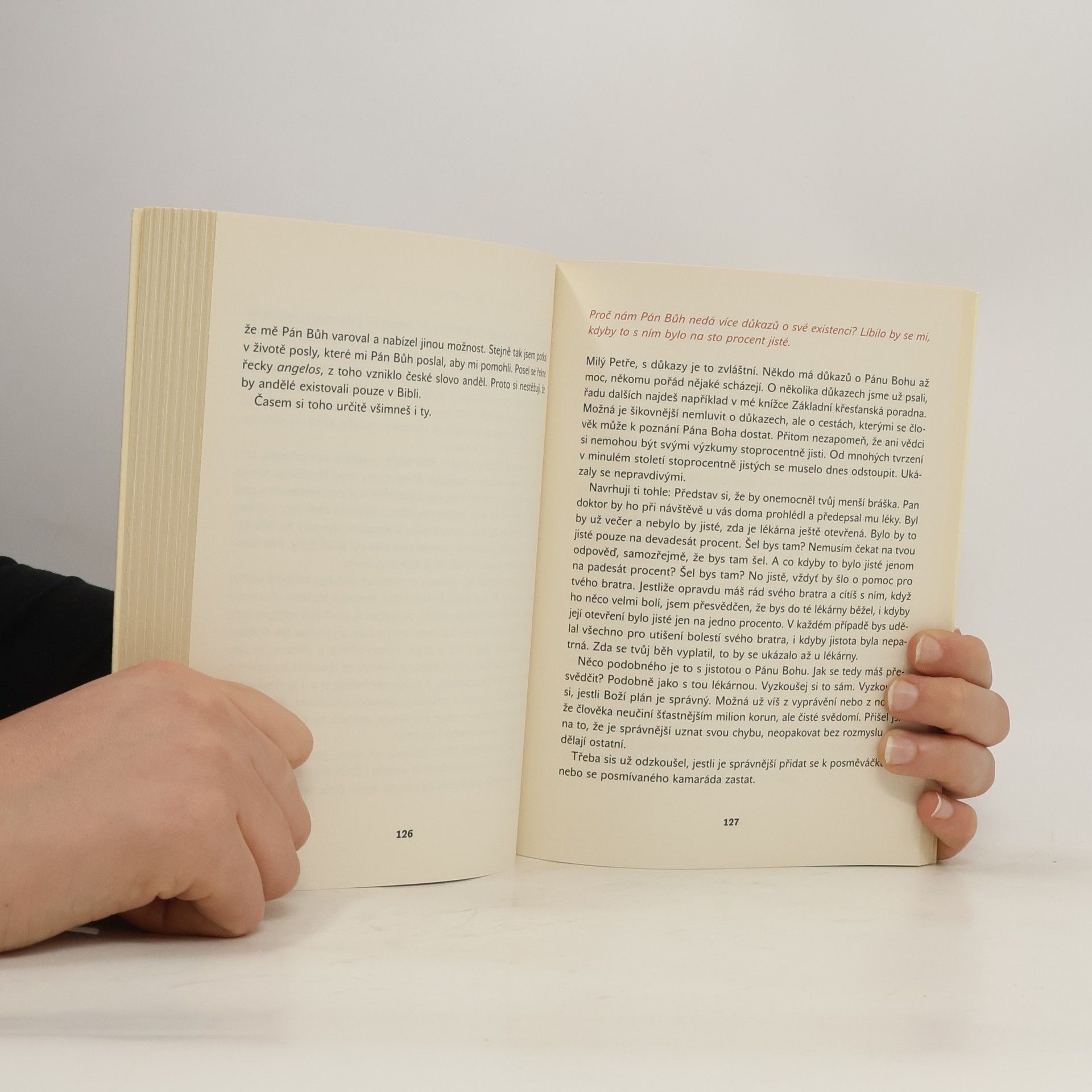 Kniha neotřele vysvětluje dětem základní pojmy křesťanského života a víry. Obsahuje výklad Desatera a modlitby Otčenáš, věnuje se Ježíšovým podobenstvím a křesťanským svátostem. Více než polovinu publikace tvoří odpovědi na důmyslné otázky, které děti zaslaly do křesťanského časopisu Nezbeda. Najdeme tu například objasnění dotazů „Proč musím jít v neděli do kostela, když jiní hrají fotbal?“ nebo „Dneska je povinná školní docházka. Zajímalo by mě, jestli také Ježíš chodil do školy a jaké měl známky.“, ale i závažnějších otázek víry jako „Co se s námi stane po smrti a jak to bude vypadat v nebi?“. Knihu osobitými ilustracemi doprovodil Jan Hrubý. Autor textu páter Kuneš se podílel na tvorbě náboženských pořadů pro děti a vyučoval náboženství na Arcibiskupském gymnáziu v Praze, výklad víry pro starší dětské čtenáře přinesla jeho kniha Pár kroků do křesťanství, která vyšla v nakladatelství Triáda v roce 2014.