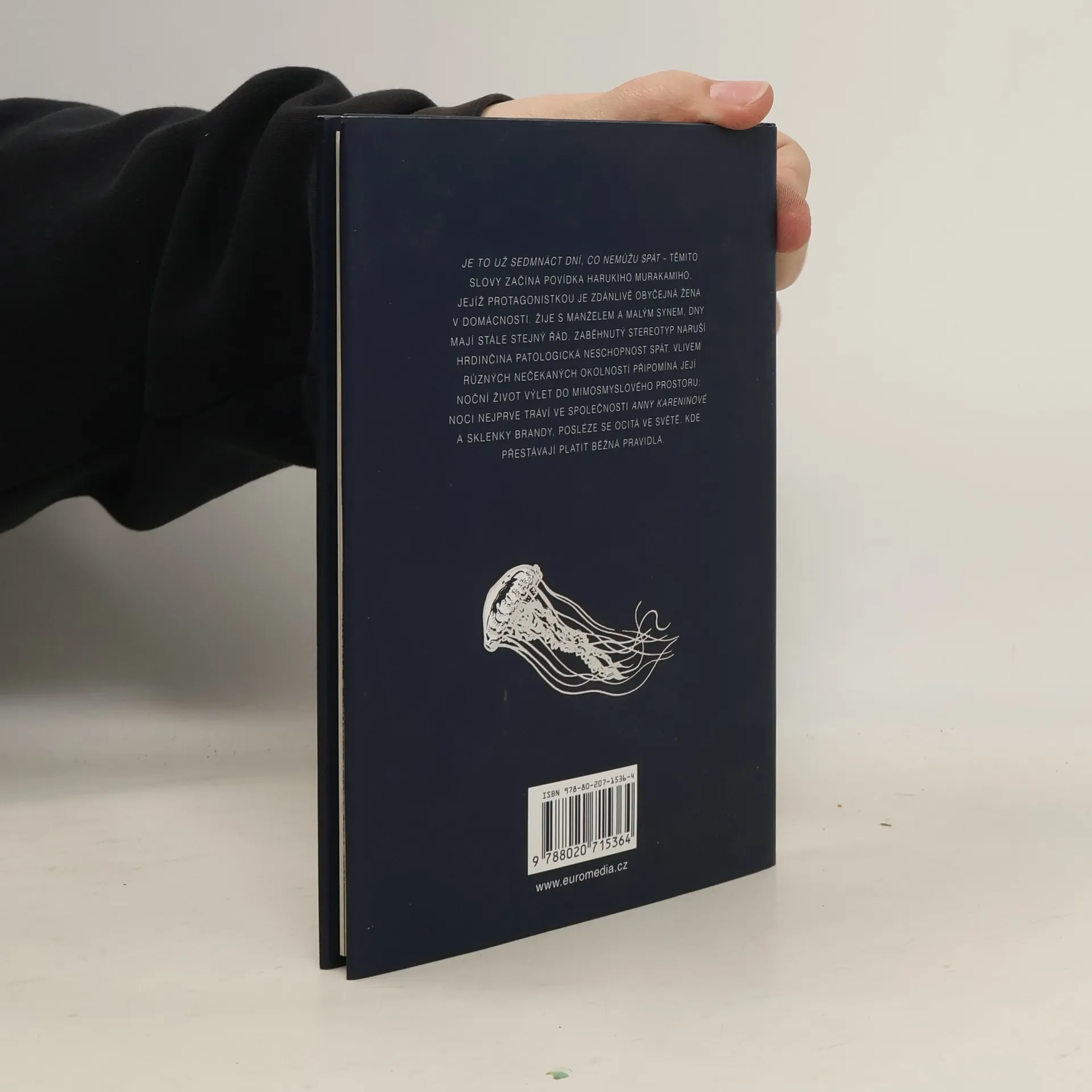 „Je to už sedmnáct dní, co nemůžu spát,“ tak začíná příběh Harukiho Murakamiho, jehož protagonistkou je zdánlivě obyčejná žena v domácnosti. Vlivem různých nečekaných okolností připomíná její noční život výlet do mimosmyslového prostoru. Ve světě, který je naprosto odlišný od našeho, prozkoumává svou rodinu, sama sebe, i význam života a smrti. Ilustrační doprovod ke knize vytvořila známá německá grafička Kat Menschik.