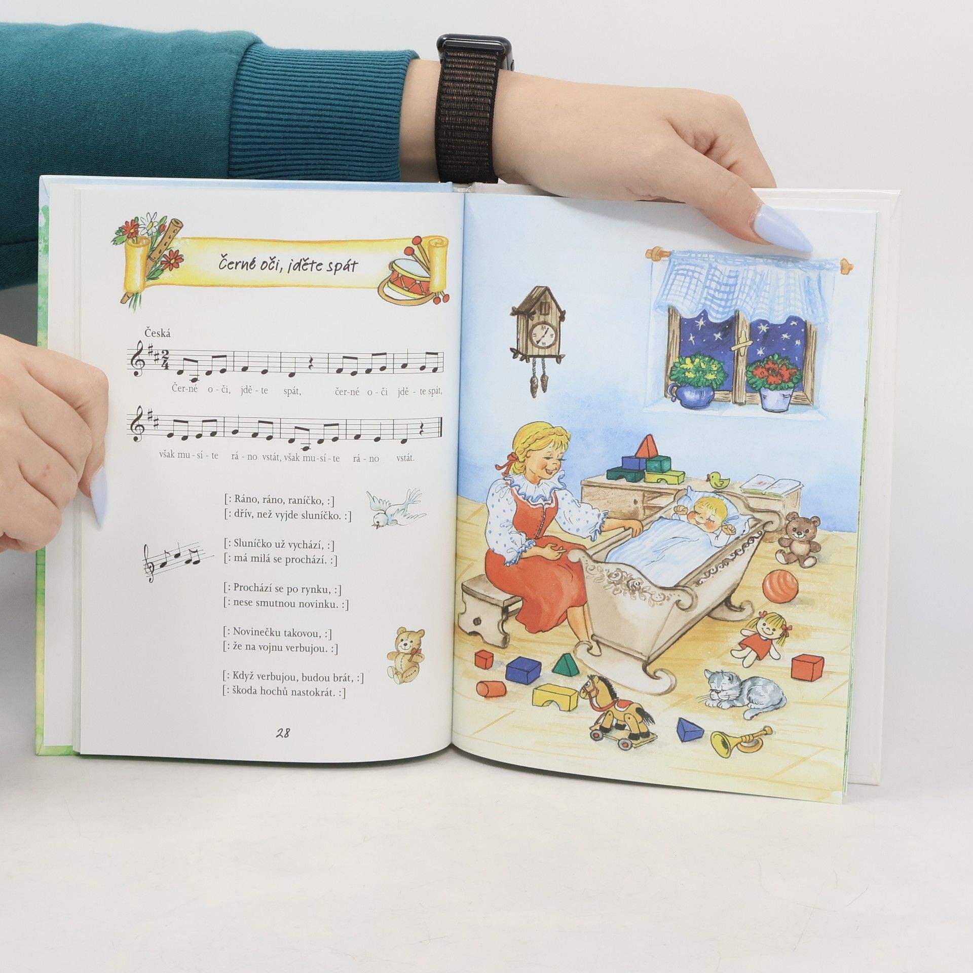 Sbírka 25 oblíbených lidových písniček s notami a veselými obrázky Vladimíry Vopičkové. Písničky jsou určeny těm nejmenším. Mají jim pomoci zapamatovat si a procvičit melodie i slova těch nejznámějších – Šla Nanynka do zelí, Cib, cib, cibulenka, Pásla ovečky nebo Červená, modrá fiala. Vaše děti si knížku zamilují nejen kvůli ilustracím, ale i díky malému formátu vhodnému pro dětské ručičky a praktickým na cesty.