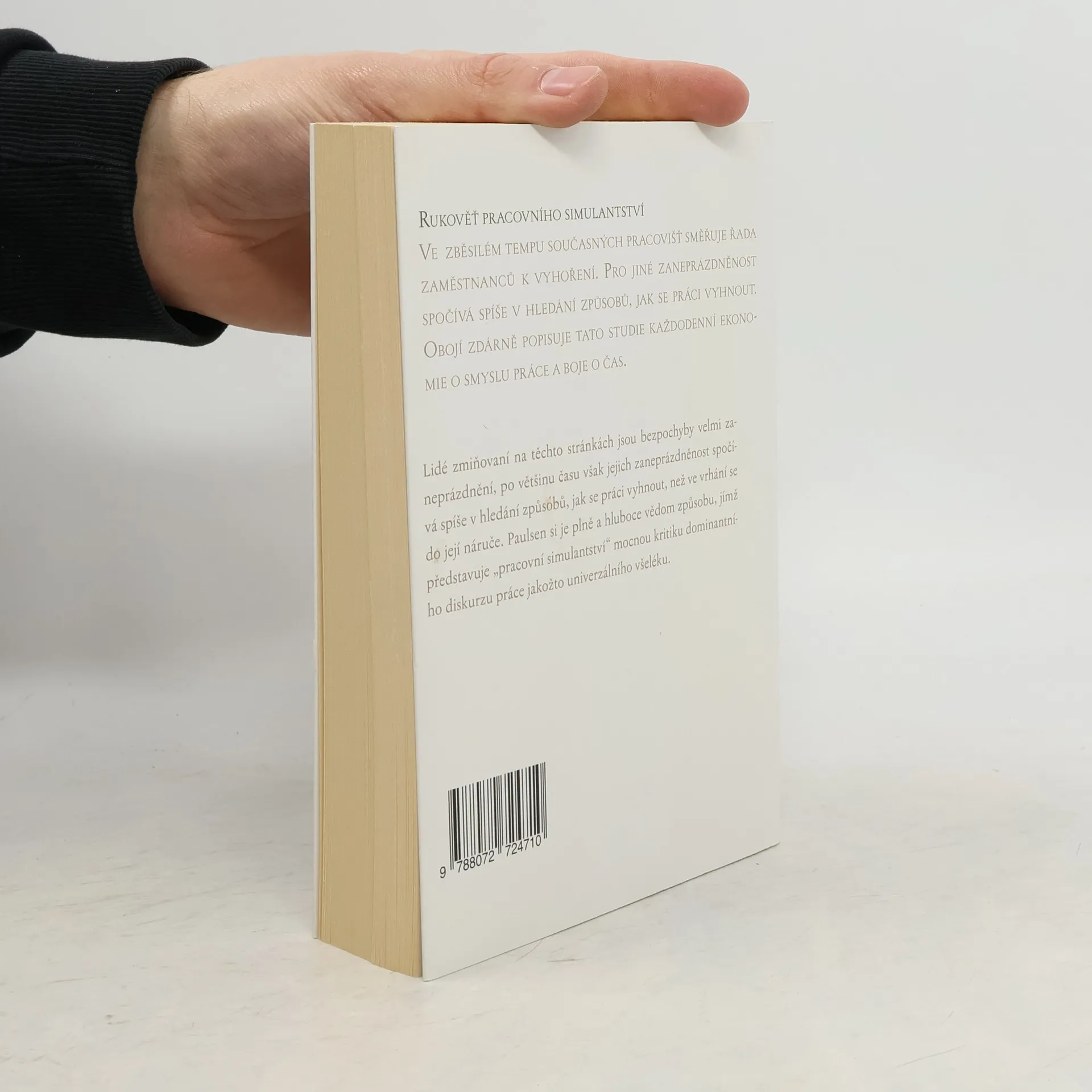 V současném pracovním prostředí se mnoho zaměstnanců ocitá na pokraji vyhoření, zatímco jiní se snaží najít způsoby, jak se práci vyhnout. Tato studie každodenní ekonomie se zaměřuje na smysl práce a boj o čas. Postavy v knize jsou často zaneprázdněné, ale jejich činnost spočívá spíše v obraně před prací než v aktivním zapojení. Autor, Roland Paulsen, kritizuje dominantní diskurz o práci jako univerzálním řešení. Zatímco lidé tráví stále více času v zaměstnání, mezinárodní statistiky ukazují, že průměrný zaměstnanec věnuje denně přibližně dvě hodiny činnostem nesouvisejícím s prací. Jak je to možné? Paulsen zkoumá fenomén „pracovního simulantství“, což je čas věnovaný osobním záležitostem během pracovní doby. Zkoumá různé příčiny tohoto jevu, od nedostatku pracovních úkolů po vědomé bojkotování. Kniha se opírá o širokou škálu materiálů, včetně rozhovorů a empirického výzkumu, a kombinuje kvantitativní a kvalitativní data k analýze zahálky na moderních pracovištích. Nabízí nové pohledy na subjektivitu, racionalitu a vyhýbání se práci, a oslovuje nejen vědecké pracovníky, ale i studenty sociologie práce a organizací.
