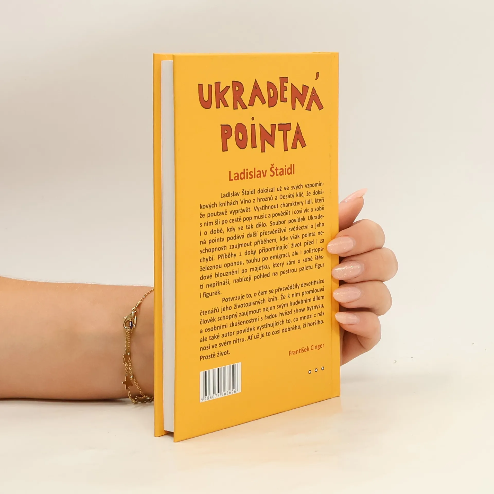 Ladislav Štaidl dokázal už ve svých vzpomínkových knihách Víno z hroznů a Desátý klíč, že dokáže poutavě vyprávět. Vystihnout charaktery lidí, kteří s ním šli po cestě pop music a povědět i cosi víc o sobě i o době, kdy se tak dělo. Soubor povídek Ukradená pointa podává další přesvědčivé svědectví o jeho schopnosti zaujmout příběhem, kde však pointa nechybí. Příběhy z doby připomínající život před i za železnou oponou, touhu po emigraci, ale i polistopadové blouznění po majetku, který sám o sobě štěstí nepřináší, nabízejí pohled na pestrou paletu figur i figurek. Potvrzuje to, o čem se přesvědčily desetitisíce čtenářů jeho životopisných knih. Že k nim promlouvá člověk schopný zaujmout nejen svým hudebním dílem a osobními zkušenostmi s řadou hvězd show byznysu, ale také autor povídek vystihujících to, co mnozí z nás nosí ve svém nitru. Ať už je to cosi dobrého, či horšího. Prostě život.
