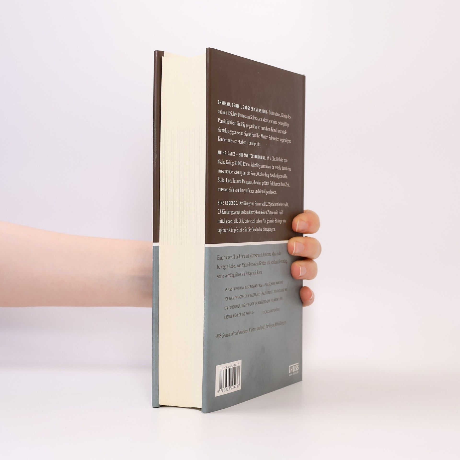 Der Hannibal des Ostens Sulla, Lucullus und Pompejus, die drei größten Feldherren ihrer Zeit, ließen sich vom König eines gar nicht so großen Reichs vorführen: Mithridates von Pontos, ihrem gefährlichsten Feind. Ein Jahrhundert nach Hannibal stellte er das Römische Reich auf eine neue harte Probe. Auf diesen Coup war das krisengeschüttelte Rom nicht vorbereitet. Mithridates von Pontos überrannte in einem blitzartigen Angriff die römischen Truppen in Kleinasien und schwang sich zum Befreier der Griechen auf. In einer groß angelegten Verschwörung lies er 80 000 römische Siedler und Kaufleute in Kleinasien kaltblutig ermorden. Während die römische Republik unaufhaltsam ihrem Ende entgegenschlitterte, musste sie sich fast dreißig Jahre von einem besessenen Machtmenschen terrorisieren lassen, dem der Königsthron in seinem kleinen, aber wohlhabenden Land nicht reichte. Fundiert und mit aktuellen Bezügen schildert Adrienne Mayor eine der zwiespältigsten Persönlichkeiten der Antike: Als Vorfahren beanspruchte der orientalische Herrscher keine Geringeren als Alexander den Großen und den Perserkönig Dareios. Genüsslich inszenierte er die theatralischen Auftritte, die er seiner edlen Abstammung zu schulden glaubte. Ebenso grotesk war seine krankhafte Angst vor Feinden, die ihn dazu trieb, sich mit Giften in kleinen Dosen zu immunisieren – eine Methode, so kompromisslos wie sein ganzes Leben.