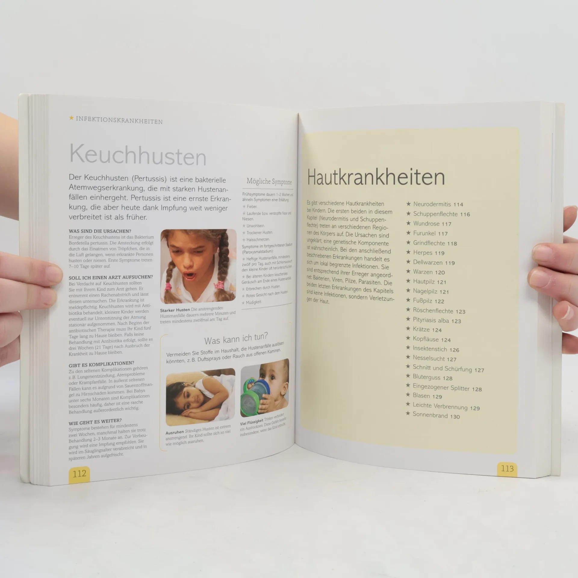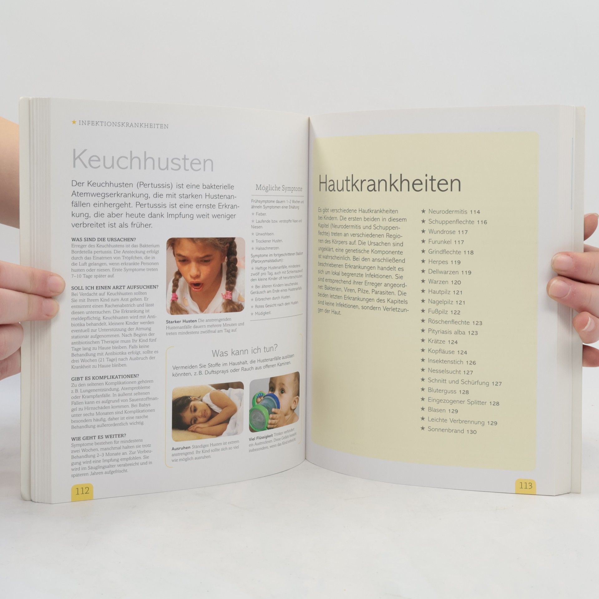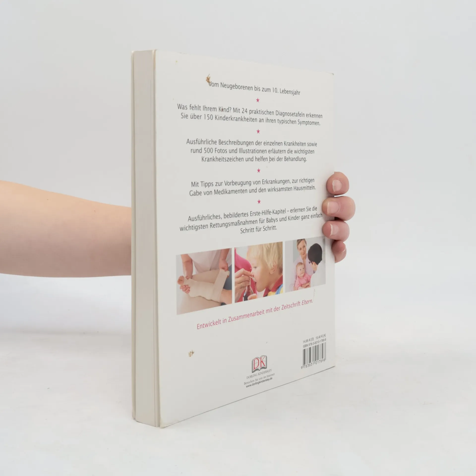 Entwickelt in Zusammenarbeit mit der Zeitschrift Eltern. Vom Neugeborenen bis zum 10. Lebensjahr Was fehlt meinem Kind? Kann ich es auch zu Hause behandeln? Mit 24 praktischen Diagnosetafeln erkennen Sie über 150 Kinderkrankheiten an ihren typischen Symptomen, ergreifen selbst erste Behandlungsmaßnahmen und wissen, wann Sie einen Arzt zu Rate ziehen sollten. Detaillierte Beschreibungen der einzelnen Krankheiten sowie rund 500 Fotos und Illustrationen erläutern die wichtigsten Krankheitszeichen und helfen bei der Behandlung. Mit Tipps zur Vorbeugung von Erkrankungen, zur richtigen Gabe von Medikamenten und den wirksamsten Hausmitteln. Das ausführliche, bebilderte Erste-Hilfe-Kapitel zeigt Ihnen die wichtigsten Rettungsmaßnahmen für Babys und Kinder ganz einfach und Schritt für Schritt. Mit dem Titel „Kinderkrankheiten“ aus der neuen Reihe „DK ElternWissen“ werden junge Eltern umfassend auf alle Eventualitäten vorbereitet!