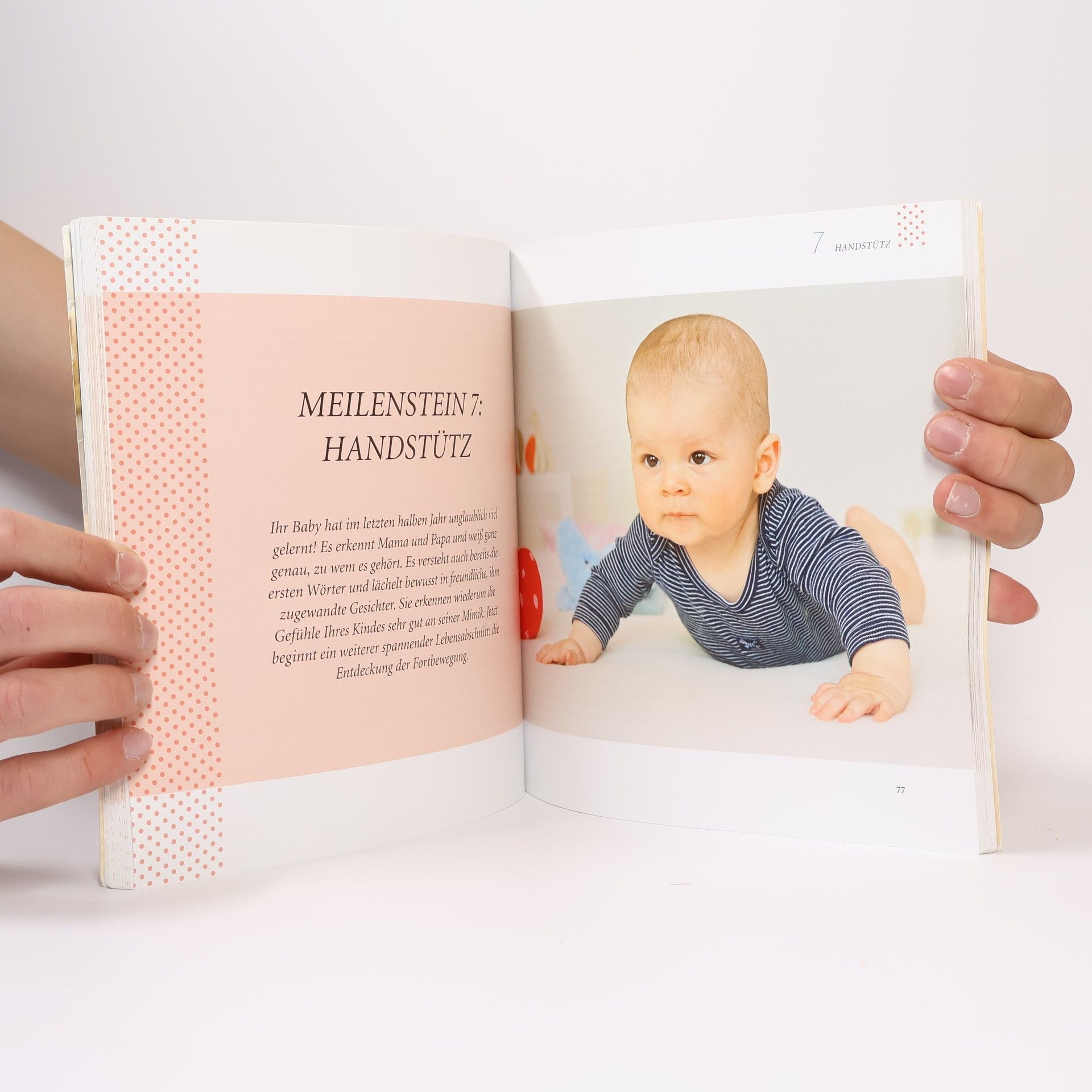 Nie wieder durchläuft der Mensch eine so rasante Entwicklung wie in seinem ersten Lebensjahr. Für Eltern, die die Fortschritte ihres kleinen Engels bestaunen, gibt es einige besondere Wegmarken im ersten Jahr mit ihrem Kind: die Meilensteine der Entwicklung. Vom ersten Blickkontakt und dem ersten Lächeln bis hin zum ersten Schritt können Eltern diese Meilensteine nun Bild für Bild und Augenblick für Augenblick begleiten. Jeder Meilenstein wird detailliert beschrieben. Neben sachkundigen Informationen zu kognitiven, sensorischen und physischen Fortschritten des Kindes wartet jedes Kapitel mit anregenden Spiel- und Beschäftigungsideen auf, die die Entwicklung optimal unterstützen und fördern. Ein schöner, unterhaltsamer und berührender Begleiter im Leben mit dem Baby.