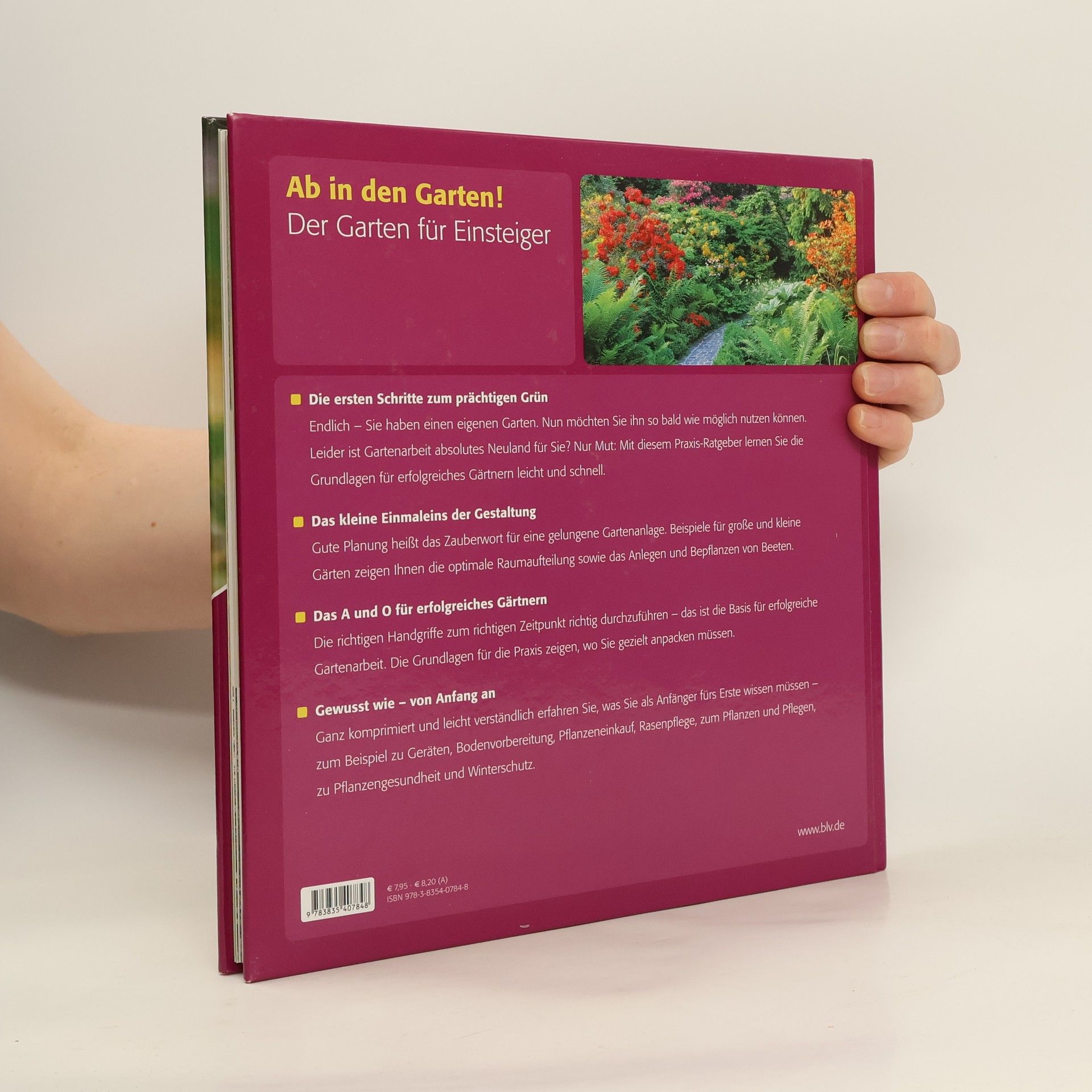 Wer endlich einen eigenen Garten hat, möchte ihn so bald wie möglich nutzen können. Doch für so manchen stolzen Besitzer eines eigenen Fleckchens Grün ist die Gartenarbeit absolutes Neuland. Da heißt es „Nur Mut!“ und sich Unterstützung sichern: Mit „Der Garten für Einsteiger“ (BLV Buchverlag) lernt man die Grundlagen für erfolgreiches Gärtnern leicht und schnell. Zunächst gilt es, das kleine Einmaleins der Gestaltung zu verstehen: Gute Planung heißt das Zauberwort für eine gelungene Gartenanlage. Beispiele für große und kleine Gärten zeigen hier die optimale Raumaufteilung sowie das Anlegen und Bepflanzen von Beeten. Das A und O für erfolgreiches Gärtnern ist es, die richtigen Handgriffe zum richtigen Zeitpunkt richtig durchzuführen. Die Grundlagen für die Praxis zeigen, wo man gezielt anpacken muss. Ganz komprimiert und leicht verständlich erfährt der Garten-Anfänger, was er fürs Erste wissen muss – zum Beispiel zu Geräten, Bodenvorbereitung, Pflanzeneinkauf, Rasenpflege, zum Pflanzen und Pflegen, zu Pflanzengesundheit und Winterschutz.