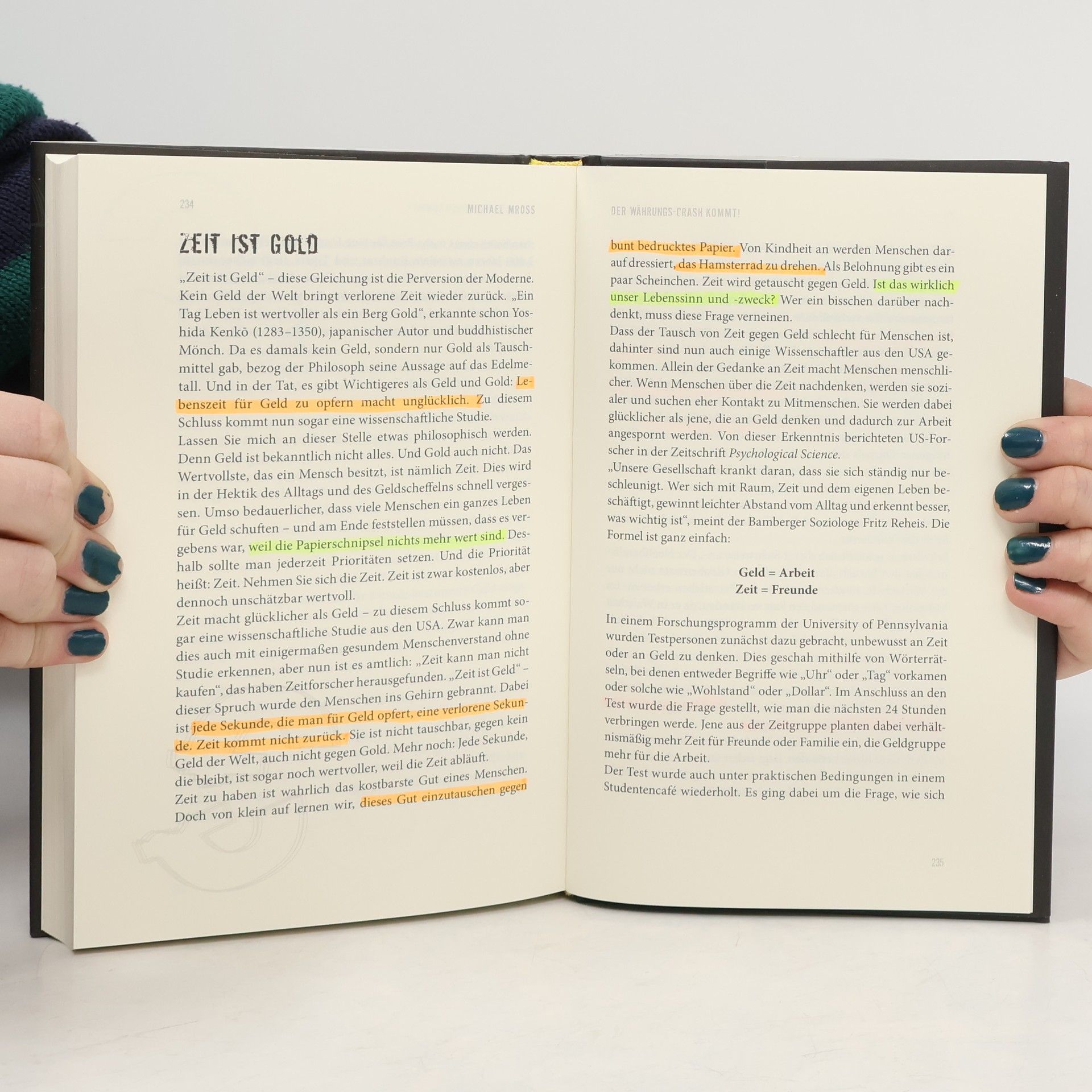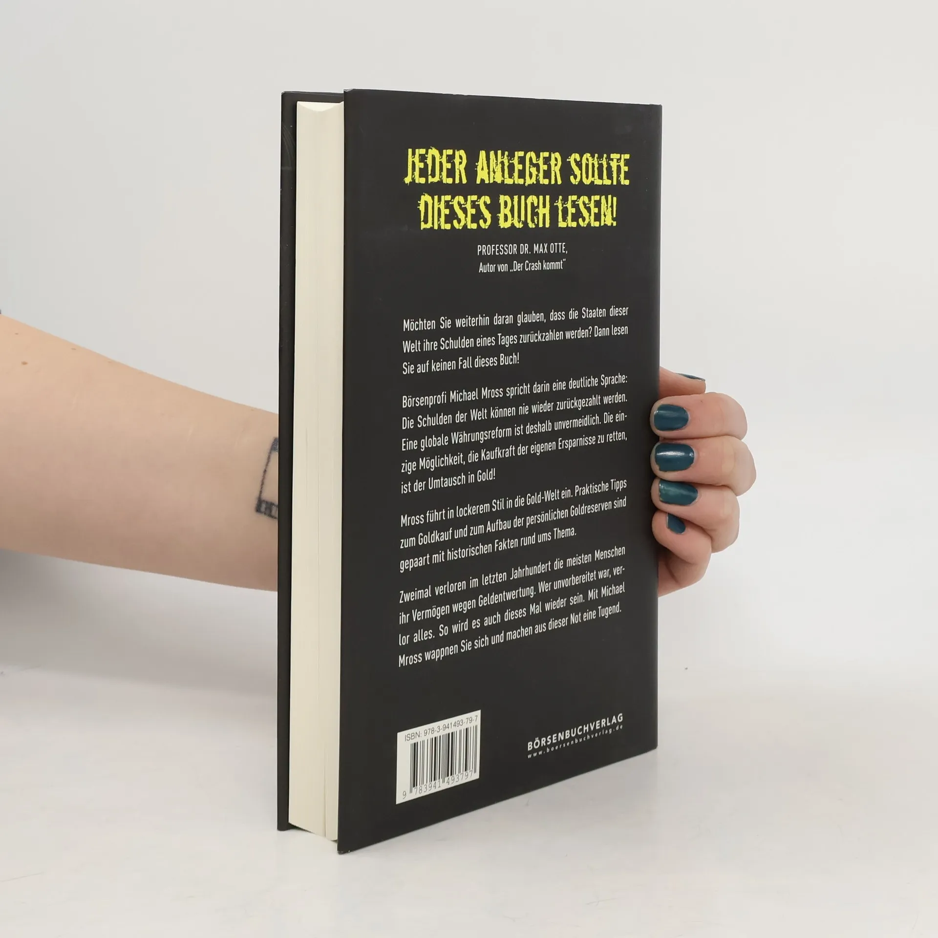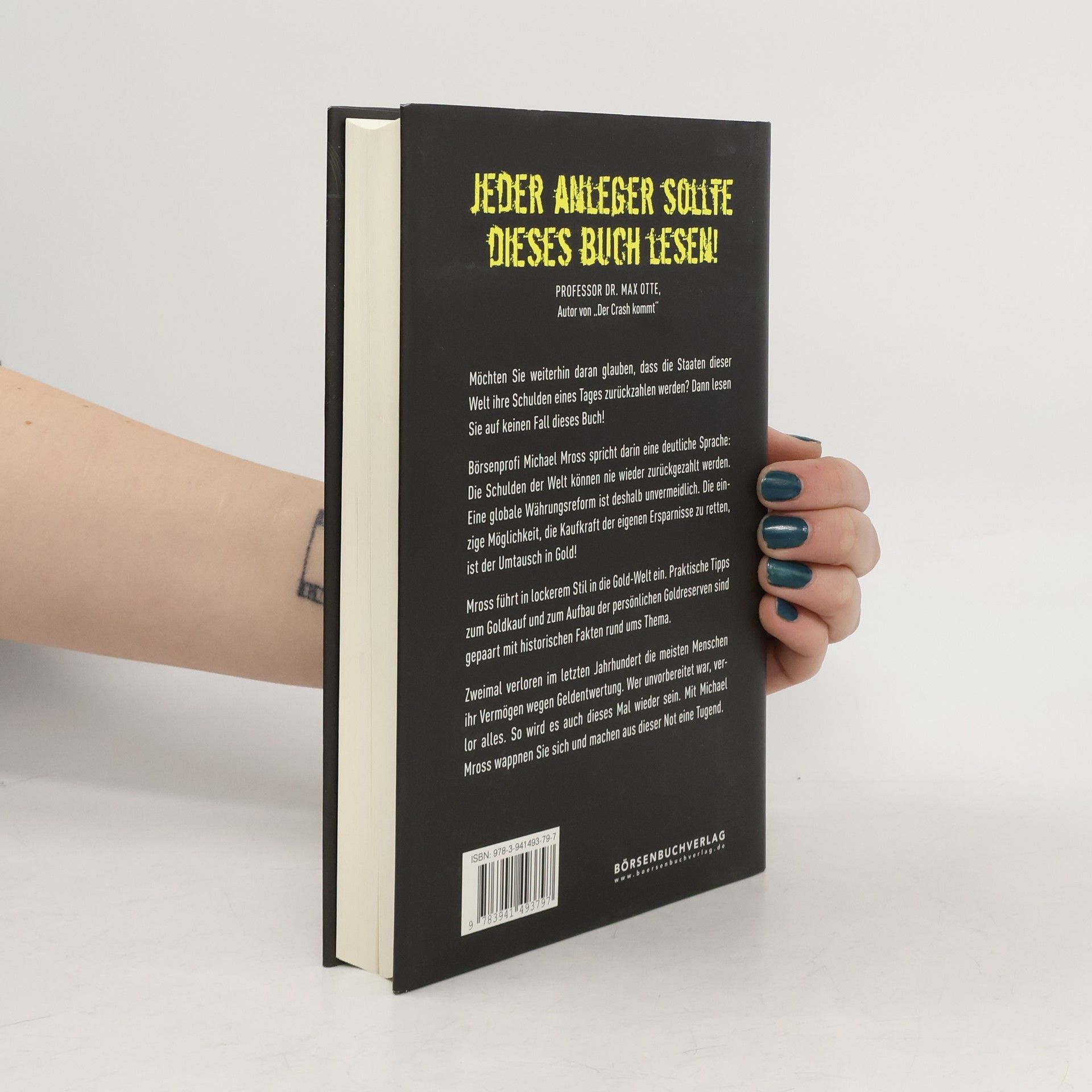 Es ist höchste Zeit, an Gold zu denken, sagt Michael Mross. Die Schulden der Welt können nie wieder zurückgezahlt werden. Eine globale Währungsreform ist deshalb unvermeidlich. Die einzige Möglichkeit, die Kaufkraft seiner Ersparnisse zu retten, ist der Umtausch in Gold! Das Buch erklärt, warum es für Gold nie zu spät ist. Es ist die ideale Lektüre für „Gold-Einsteiger“ und Fortgeschrittene: Der renommierte Börsenjournalist führt Sie in lockerem Stil in die Gold-Welt ein - anekdotisch gewürzt, wertvolles Hintergrundwissen einfach erklärt, ohne Fachchinesisch. Stattdessen nimmt Mross den Leser mit auf seine ganz persönliche „Gold-Entdeckungsreise“. Praktische Tipps zum Goldkauf und zum Aufbau der persönlichen Goldreserven sind gepaart mit historischen Fakten rund ums Thema. Zwei Mal verloren im letzten Jahrhundert die meisten Menschen ihr Vermögen wegen Geldentwertung. Wer unvorbereitet war, verlor alles. So wird es auch dieses Mal wieder sein. Mit Michael Mross wappnen Sie sich und machen aus dieser Not eine Tugend.