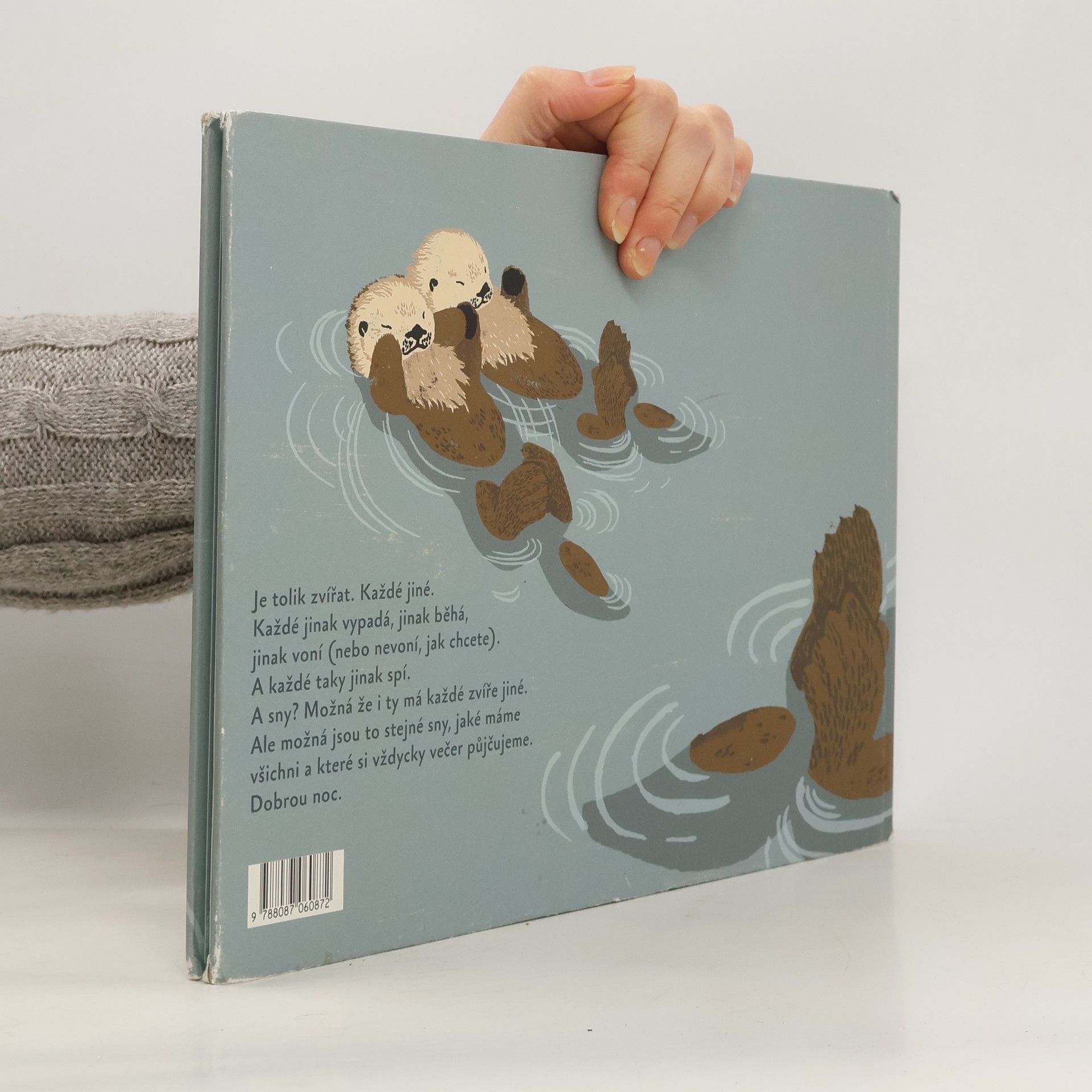 Je tolik zvířat. Každé jiné. Každé jinak vypadá, jinak běhá, jinak voní (nebo nevoní, jak chcete). A každé taky jinak spí. A sny? Možná že i ty má každé zvíře jiné. Ale možná jsou to stejné sny, jaké máme všichni a které si vždycky večer půjčujeme. Dobrou noc. První vydání.