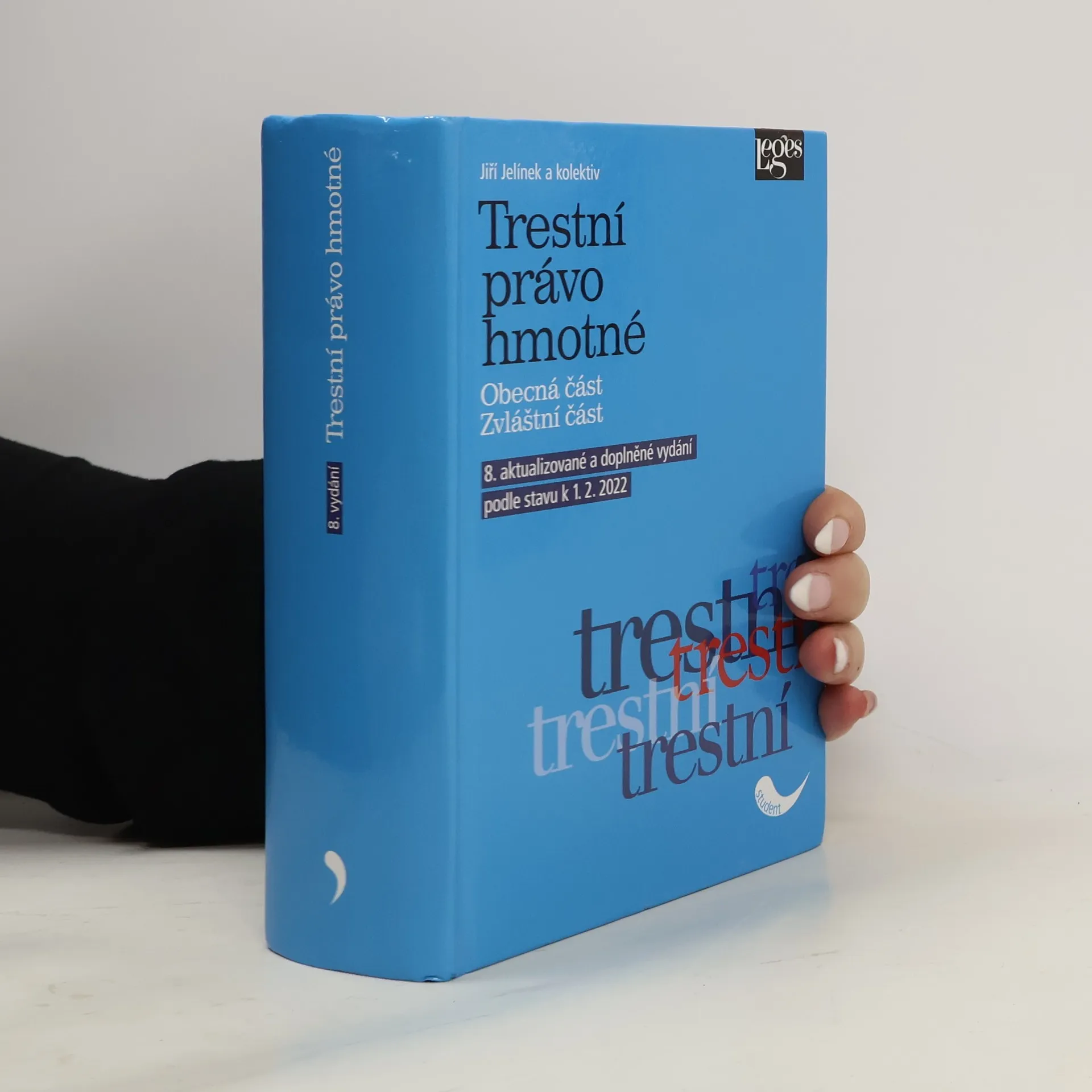 Souborná vysokoškolská učebnice systematicky vykládá pojmy a instituty trestního zákoníku, zákona o soudnictví ve věcech mládeže a zákona o trestní odpovědnosti právnických osob. Spojením výkladu obecné a zvláštní části trestního práva se čtenáři dostává do rukou ucelené pojednání o základním právním oboru českého právního systému. Autorský kolektiv se ve 35 kapitolách věnuje všem podstatným institutům trestního práva hmotného. Kromě rozboru platné právní úpravy se také kriticky vyjadřuje ke sporným a nejasným otázkám teorie či aplikační praxe. Při výkladu přihlíží k použitelné aktuální judikatuře obecných soudů i Ústavního soudu. Učebnici zpracoval autorský kolektiv tvořený pedagogy z Právnické fakulty UK v Praze a Právnické fakulty UP v Olomouci pod vedením legendy trestního práva prof. JUDr. Jiřího Jelínka, CSc. Pro osmé vydání učebnice byl text aktualizován v souvislosti s několika novelizacemi trestního zákoníku, dále byly zapracovány novinky z evropského práva, zohledněna nová tuzemská i evropská judikatura a autoři reagovali také na změny v mimotrestních předpisech. Učebnice je určena vysokoškolským studentům, stejně jako pracovníkům legislativní či aplikační praxe; ocení ji však každý, komu poskytne rychlou orientaci ve stále se měnící právní úpravě.