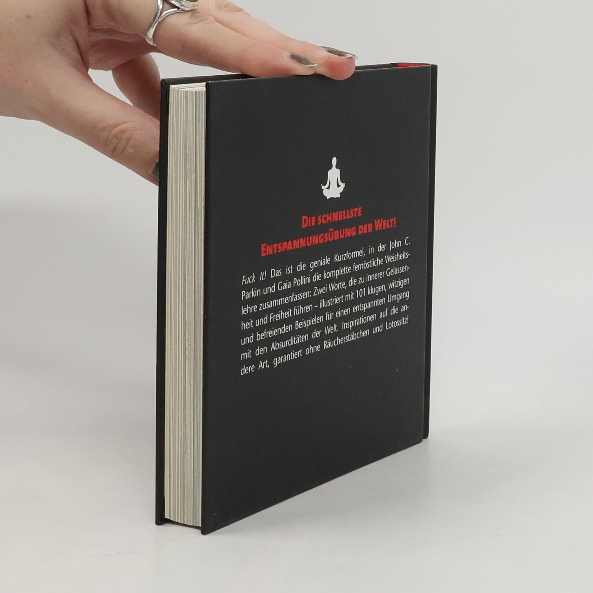 Die schnellste Entspannungsübung der Welt „Fuck It!” Das ist die geniale Kurzformel, auf die John C. Parkin die komplette fernöstliche Weisheitslehre in seinem gleichnamigen Erfolgstitel komprimiert hat: Zwei Worte, die zu innerer Gelassenheit und Freiheit führen. Sein neues Buch, „Sag Fuck It”, ist Geschenkbuch und Gebrauchsanweisung in einem: Hier bringt er die „Fuck-It”-Philosophie auf den Punkt und liefert kluge, witzige und absurdkomische Sprüche und Illustrationen, von denen wir uns jeden Tag neu inspirieren lassen können. Garantiert ohne Räucherstäbchen und Lotossitz! Schon wieder ein neuer Tag, der bis oben hin mit Terminen vollgestopft ist. Und all die Leute, die wir noch treffen müssen! Dabei ist es natürlich extrem wichtig, stets cool und trendy zu sein. Insgeheim haben wir es schon oft gedacht, und jetzt sagen wir es einfach: „Fuck It!” Heute werfen wir unsere Pläne über den Haufen und die To-do-Liste in den Müll. Lassen wir uns vom Tag überraschen, vielleicht passiert ja etwas Spannendes. Und wenn nicht, „Fuck It!” Wenn wir häufiger mal loslassen und über uns, die Welt und ihre Absurditäten lachen, werden sich auf einmal viele Alternativen zum sogenannten Ernst des Lebens auftun. 101 davon gibt es schon mal in diesem Buch. Also: Lesen, lachen, glücklich sein!