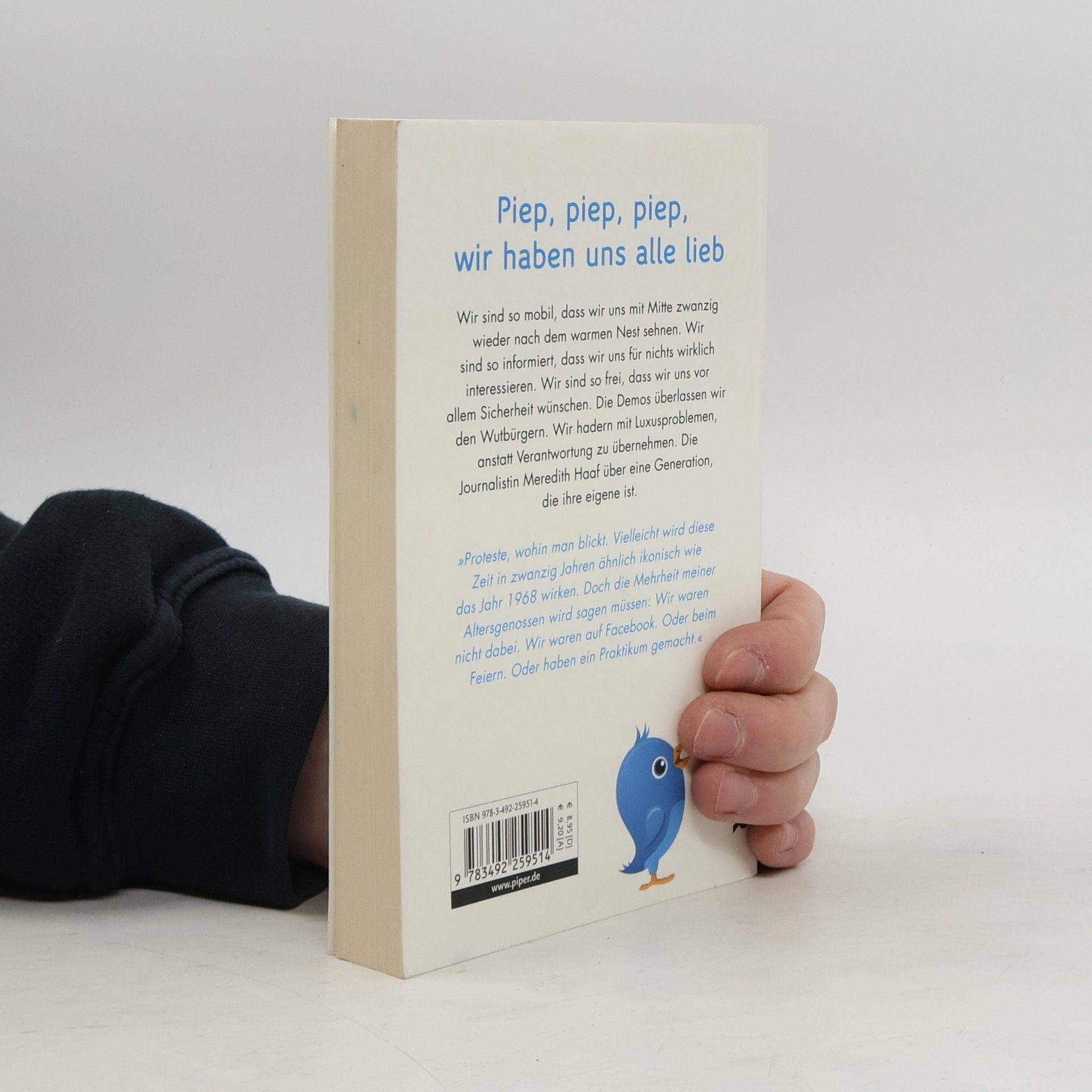 Sie sind so mobil, dass sie sich mit Mitte Zwanzig wieder nach dem warmen Nest sehnen. Sie sind so informiert, dass sie sich für nichts wirklich interessieren. Sie sind so frei, dass sie sich vor allem Sicherheit wünschen. Sie kommunizieren so viel, dass niemand mehr sagt, was Sache ist. Die Journalistin Meredith Haaf über eine Generation, die ihre eigene ist. Ihr Aufruf: Hört endlich auf, mit Luxusproblemen zu hadern. Übernehmt neben der Überwachung eures Facebook-Accounts und dem Trimmen eures Lebenslaufs Verantwortung – und nicht nur für euch selbst.