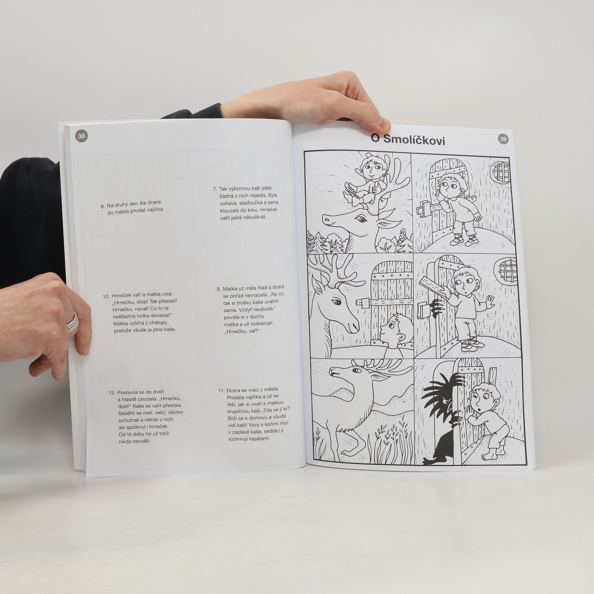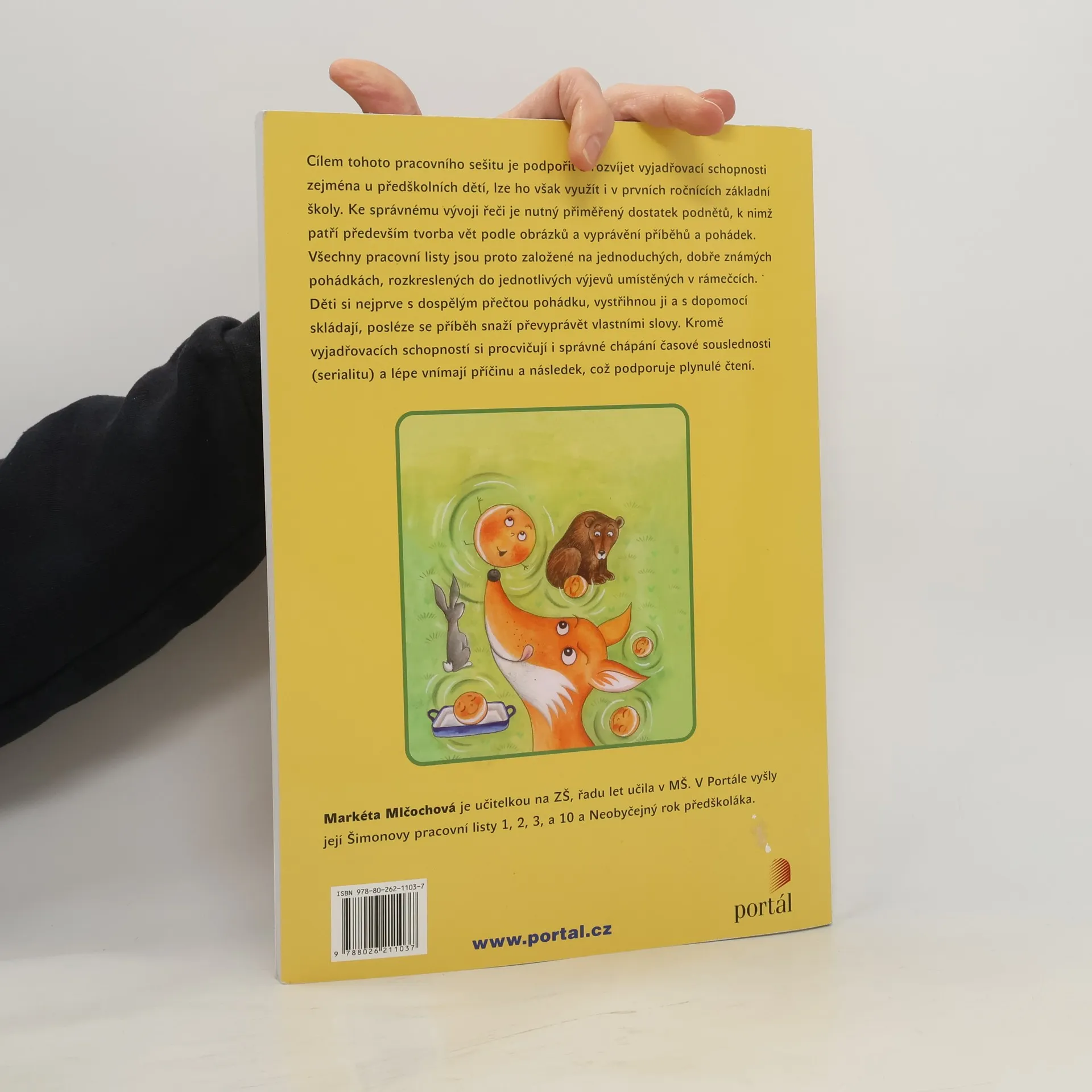 Pracovní sešit pro rozvoj vyjadřovacích dovedností předškoláků. Cílem pracovního sešitu je podpořit a rozvíjet vyjadřovací schopnosti zejména u předškolních dětí, lze ho však využít i v prvních ročnících základní školy. Ke správnému vývoji řeči je zapotřebí přiměřený dostatek podnětů. Patří k nim především tvorba vět podle obrázků a vyprávění příběhů a pohádek. Všechny pracovní listy jsou proto založené na jednoduchých, dobře známých pohádkách, rozkreslených do jednotlivých výjevů umístěných v rámečcích. Děti si nejprve s dospělým přečtou pohádku, vystřihnou ji a s dopomocí skládají, posléze se příběh pokoušejí převyprávět vlastními slovy. Kromě vyjadřovacích schopností si tak procvičují i správné chápání časové souslednosti (serialitu) a lépe vnímají příčinu a následek, což podporuje plynulé čtení.