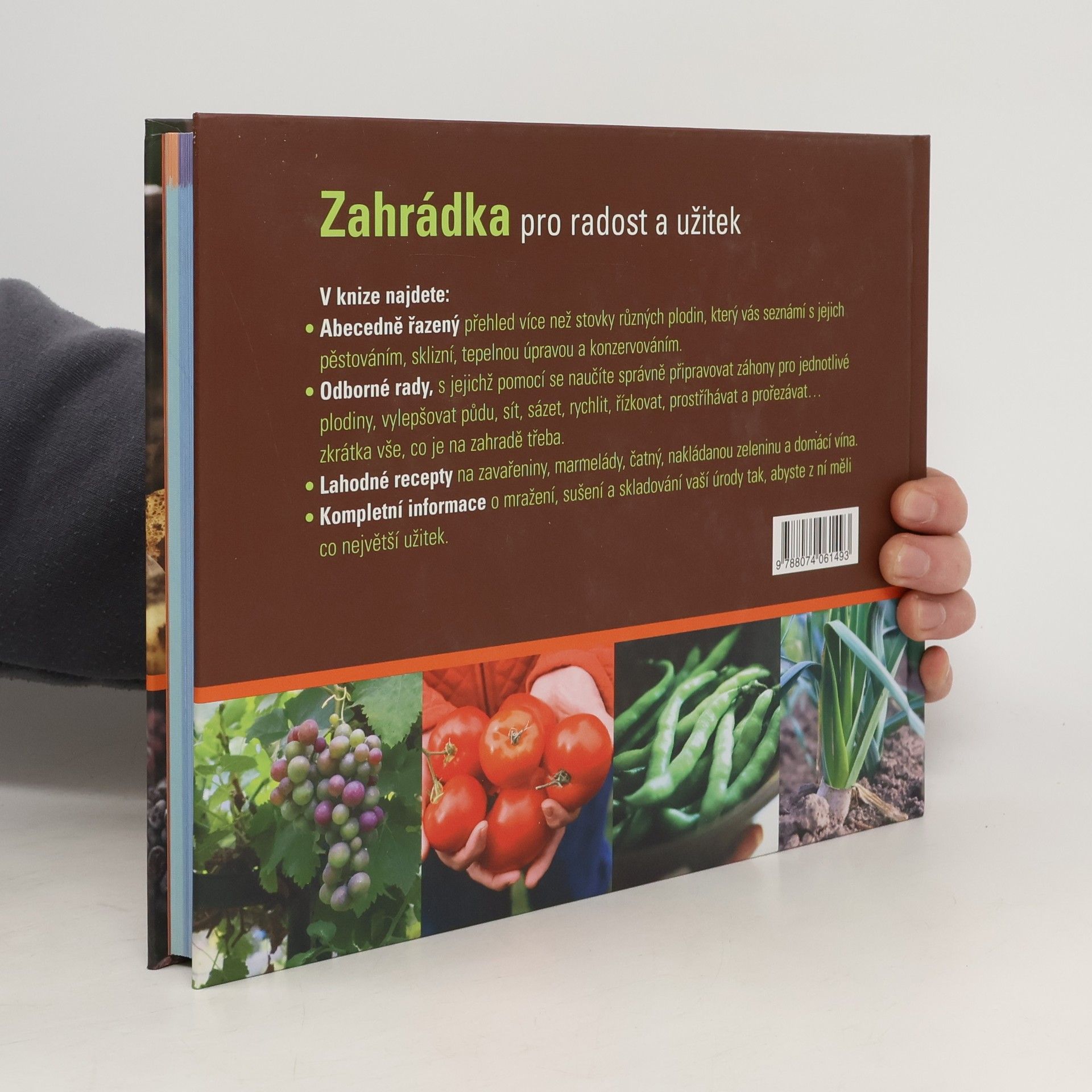 V naší nové praktické knize ZAHRÁDKA PRO RADOST A UŽITEK najdete abecední přehled rozmanitých druhů plodin a dozvíte se, jak je pěstovat, sklízet i jak je co nejlépe využít v kuchyni. Obsáhlý a přehledný rejstřík plný prověřených rad a tipů pokrývá většinu běžných nemocí a problémů, s nimiž se denně setkáváme. Nemoc nebo úraz může přijít prakticky kdykoli a kdekoli! Proto by každá domácnost měla mít k dispozici jeden výtisk, jako záruku rychlého uzdravení! Vraťte se ke klasickému pěstování vlastního ovoce a zeleniny – budete mít radost z úrody, a navíc i jistotu, že vaše produkty jsou opravdu čerstvé a neprocestovaly tisíce kilometrů! Zjistíte, které druhy ovoce a zeleniny je vhodné mrazit a které sušit a vůbec jak nejlépe skladovat úrodu, abyste z ní měli co největší užitek. Kniha vám také prozradí, jak si poradit s případnými chorobami a škůdci. Vás i vaše blízké ale zajisté nejvíce potěší lahodné recepty na skvělé marmelády, zavařeniny, šťávy či domácí vína, kterým žádná z vašich