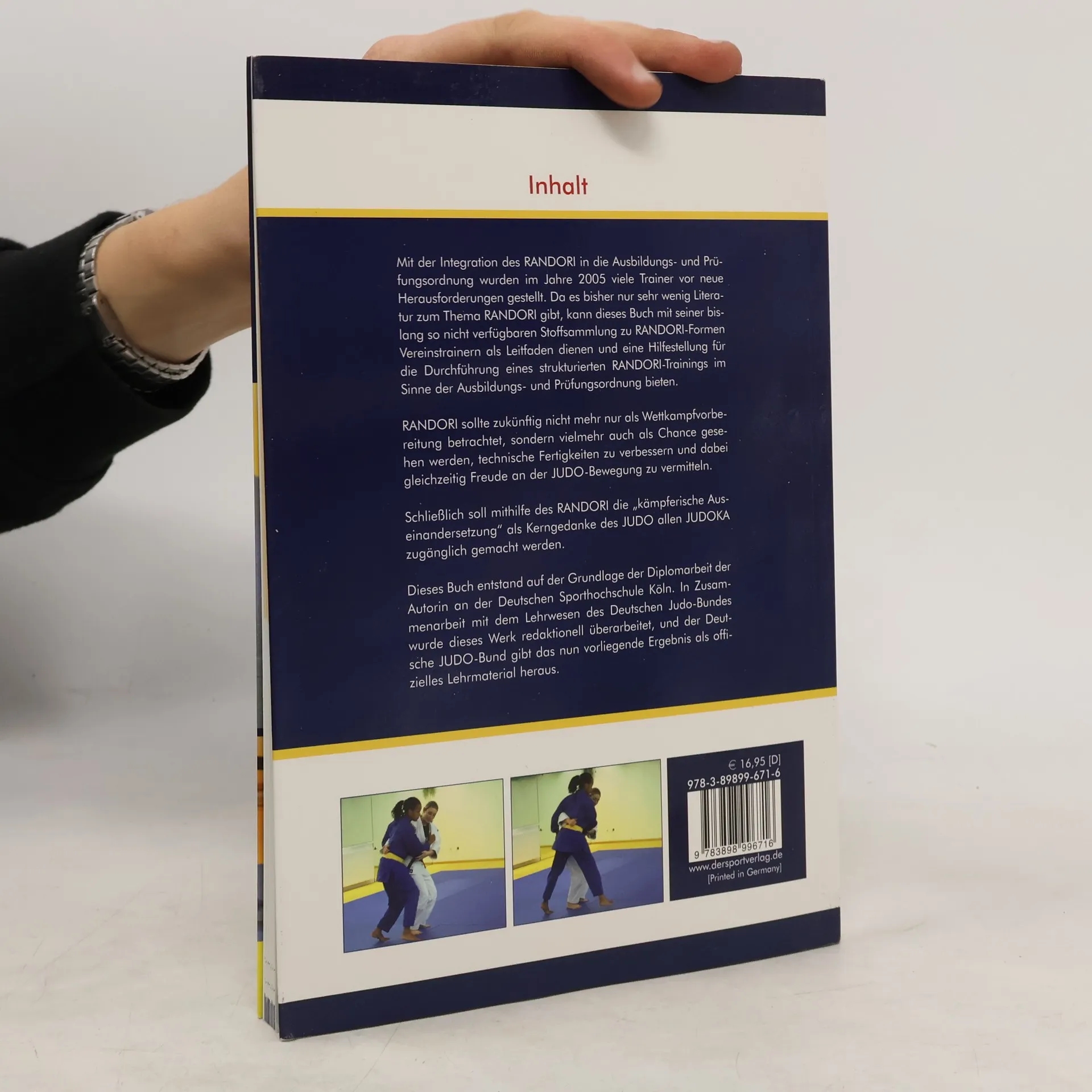 Mit der Integration des RANDORI in die Ausbildungs- und Prüfungsordnung wurden im Jahr 2005 viele Trainer vor neue Herausforderungen gestellt. Da es bisher nur sehr wenig Literatur zum Thema RANDORI gibt, kann dieses Buch mit seiner bislang so nicht verfügbaren Stoffsammlung zu RANDORI-Formen Vereinstrainern als Leitfaden dienen und eine Hilfestellung für die Durchführung eines strukturierten RANDORI-Trainings im Sinne der Ausbildungs- und Prüfungsordnung bieten. RANDORI sollte zukünftig nicht mehr nur als Wettkampfvorbereitung betrachtet, sondern vielmehr auch als Chance gesehen werden, technische Fertigkeiten zu verbessern und dabei gleichzeitig Freude an der JUDO-Bewegung zu vermitteln. Schließlich soll mithilfe des RANDORI die "kämpferische Auseinandersetzung" als Kerngedanke des JUDO allen JUDOKA zugänglich gemacht werden. Dieses Buch entstand auf der Grundlage der Diplomarbeit der Autorin an der Deutschen Sporthochschule Köln. In Zusammenarbeit mit dem Lehrwesen des Deutschen Judo-Bundes wurde dieses Werk redaktionell überarbeitet, und der Deutsche JUDO-Bund gibt das nun vorliegende Ergebnis als offizielles Lehrmaterial heraus.