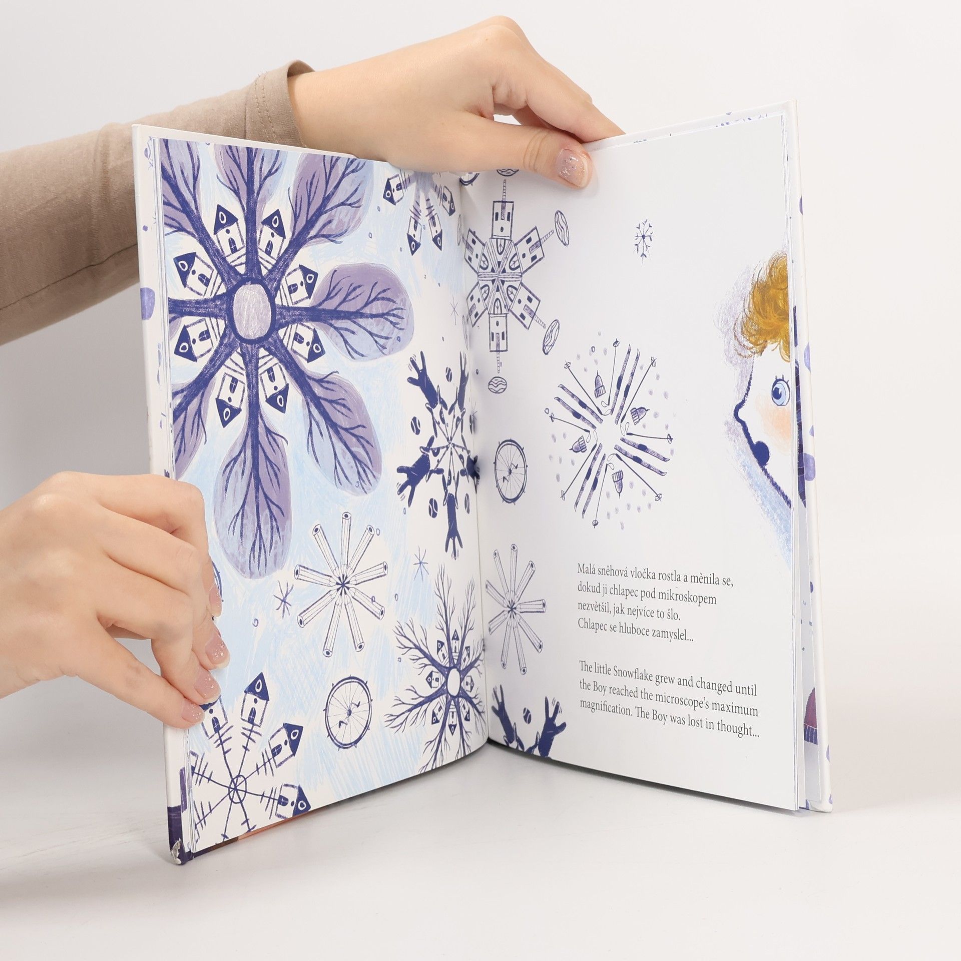 Tanec sněhové vločky je laskavým zimním příběhem o chlapci, který je ohromen krásou sněhových vloček. Velmi pečlivě je pozoruje. Objevuje nekonečnou pestrost a různorodost světa, který nás obklopuje a jehož jsme nedílnou součástí. Knížka rozvíjí dětskou zvídavost a abstraktní myšlení. Potěší jak malé, tak větší čtenáře. Celý příběh je doplněn milými ilustracemi oceňované ukrajinské ilustrátorky Julije Pilipčatiné. Poutavý dvojjazyčný příběh zároveň rozšíří slovní zásobu malých čtenářů jak v češtině, tak v angličtině.