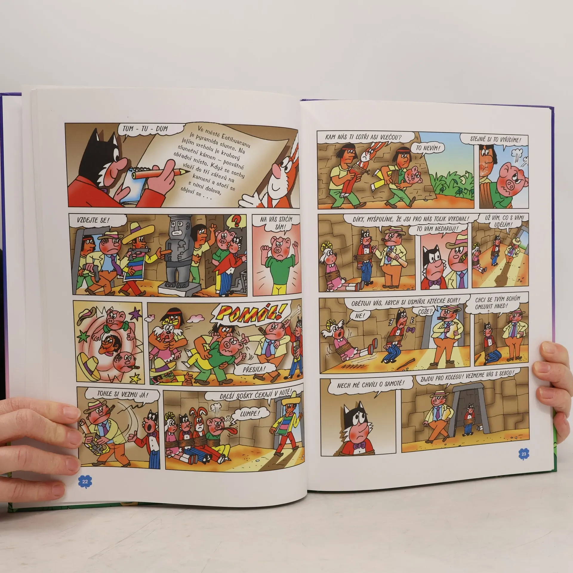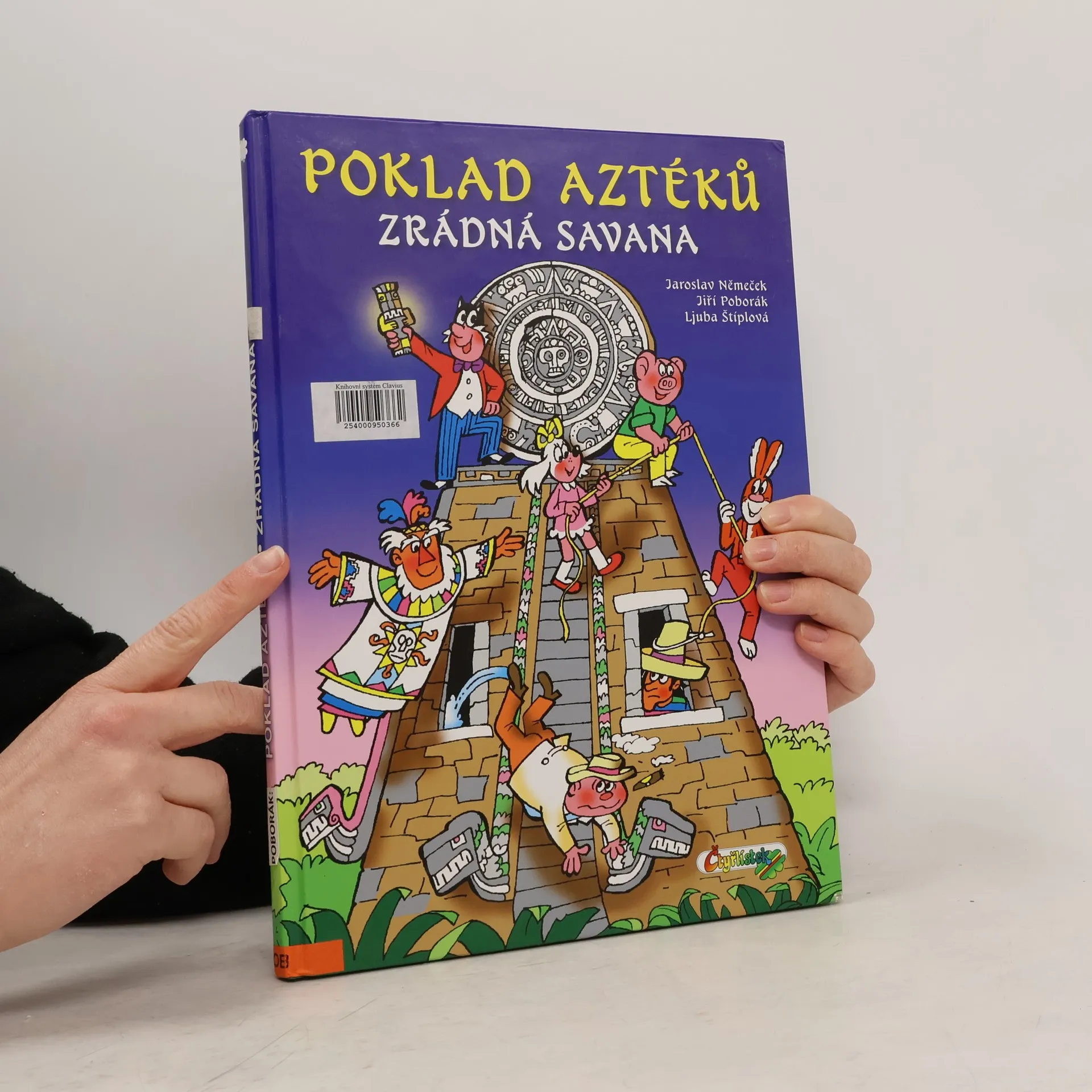 Popis: Čtyřlístek rozluští dávné tajemství Aztéků v Mexiku a vydá se do africké divočiny. Kolik překážek budou muset překonat a jak to celé nakonec dopadne? Kniha obsahuje dva příběhy Čtyřlístku: Poklad Aztéků - Jiří Poborák, Jaroslav Němeček Zrádná savana - Ljuba Štíplová, Jaroslav Němeček Poznámky: Poprvé tento soubor vyšel v roce 1997 - v menším formátu a pouze pod názvem Poklad Aztéků.