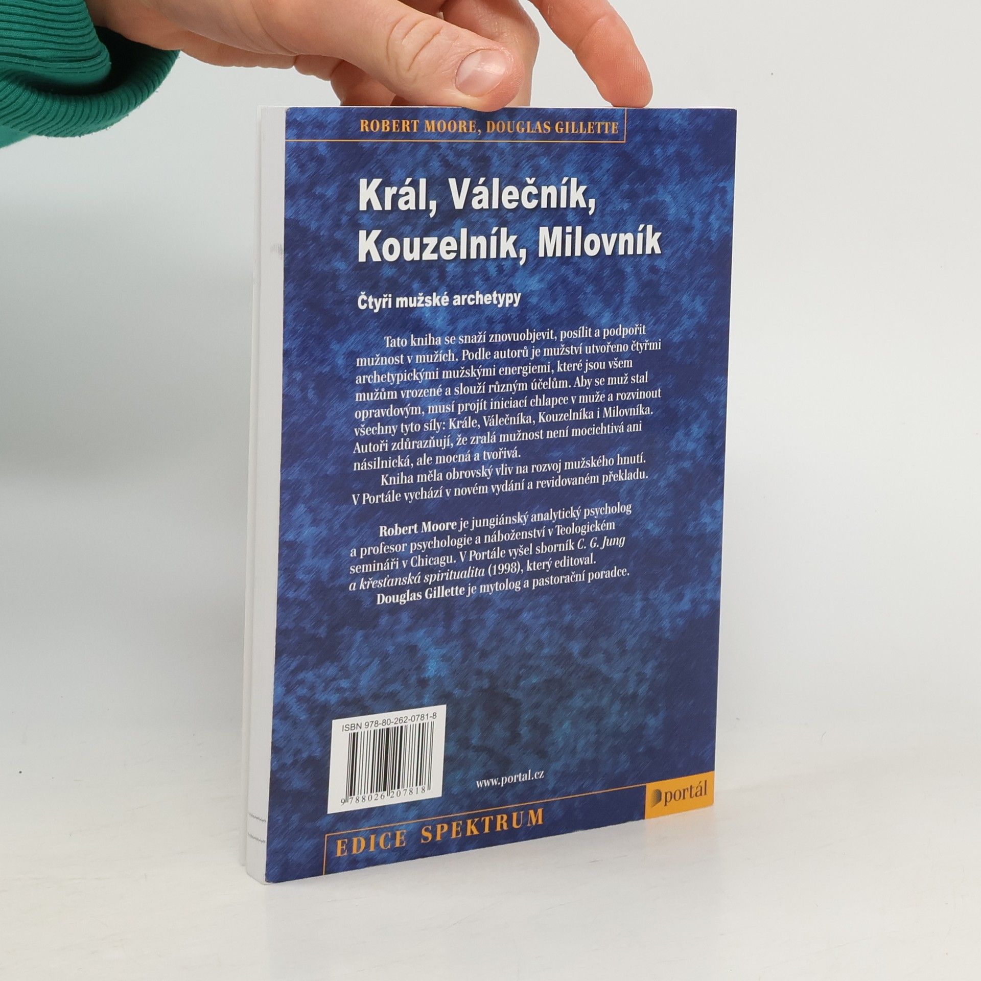 Podtitul: Čtyři mužské archetypy. Tato kniha se snaží znovuobjevit, posílit a podpořit mužnost v mužích. Podle autorů je mužství utvořeno čtyřmi archetypickými mužskými energiemi, které jsou všem mužům vrozené a slouží různým účelům. Aby se muž stal opravdovým, musí projít iniciací chlapce v muže a rozvinout všechny tyto síly: krále, válečníka, kouzelníka i milovníka. Zralá mužnost není mocichtivá ani násilnická, ale mocná a tvořivá. Společně s Blyovým Železným Janem měla kniha obrovský vliv na rozvoj mužského hnutí. Robert Moore je jungiánský analytický psycholog a profesor psychologie a náboženství v Teologickém semináři v Chicagu. V Portálu vyšel sborník C. G. Jung a křesťanská spiritualita (1998), který editoval. Douglas Gillette je mytolog a pastorační poradce.