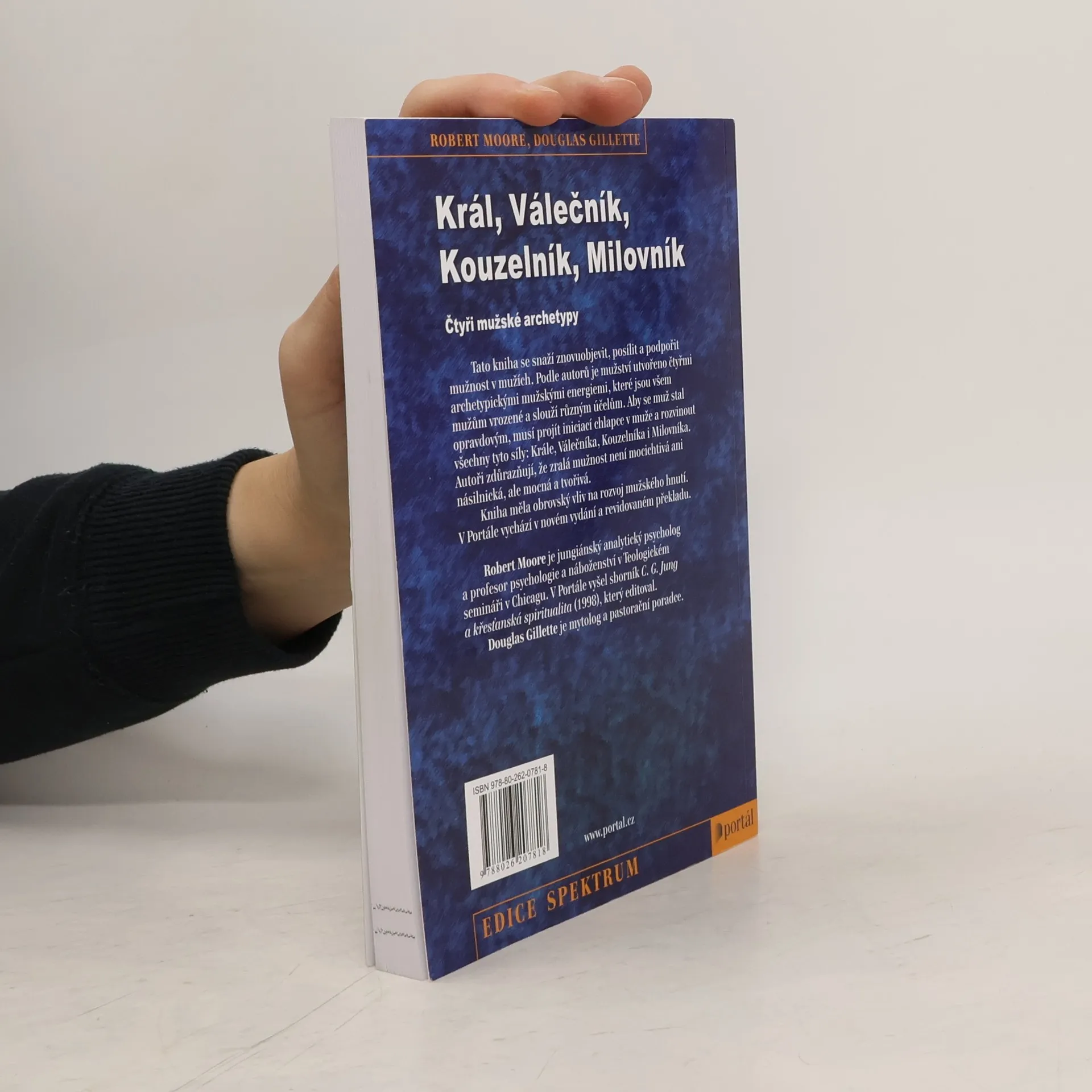 Podtitul: Čtyři mužské archetypy. Tato kniha se snaží znovuobjevit, posílit a podpořit mužnost v mužích. Podle autorů je mužství utvořeno čtyřmi archetypickými mužskými energiemi, které jsou všem mužům vrozené a slouží různým účelům. Aby se muž stal opravdovým, musí projít iniciací chlapce v muže a rozvinout všechny tyto síly: krále, válečníka, kouzelníka i milovníka. Zralá mužnost není mocichtivá ani násilnická, ale mocná a tvořivá. Společně s Blyovým Železným Janem měla kniha obrovský vliv na rozvoj mužského hnutí. Robert Moore je jungiánský analytický psycholog a profesor psychologie a náboženství v Teologickém semináři v Chicagu. V Portálu vyšel sborník C. G. Jung a křesťanská spiritualita (1998), který editoval. Douglas Gillette je mytolog a pastorační poradce.