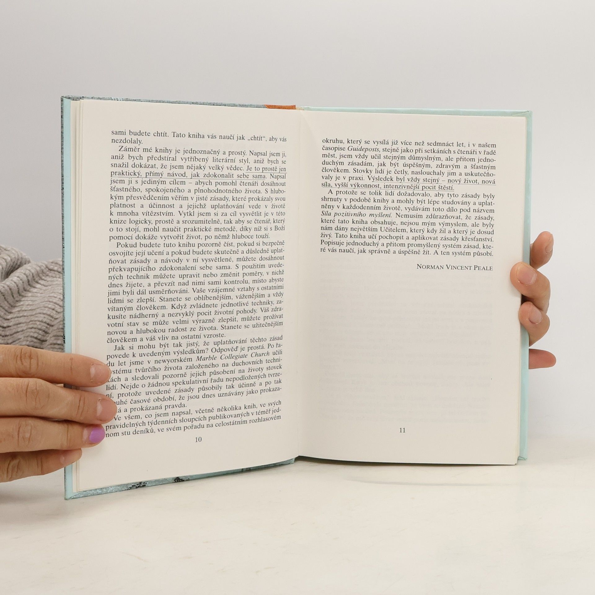 Pastor N. Peale, jehož rady a doporučení pomohly změnit dosavadní životy milionů Američanů, čtivým a nenásilným způsobem přibližuje modernímu člověku pravdu Starého a Nového zákona. Vychází přitom z dlouhodobých zkušeností a pravdivost svých tvrzení dokazuje na skutečných příbězích. Právě četba opravdových životních příběhů pomůže čtenáři pochopit, že pozitivní myšlení, které autor doporučuje, vede k úspěšnému a šťastnému životu. První vydání.... celý text