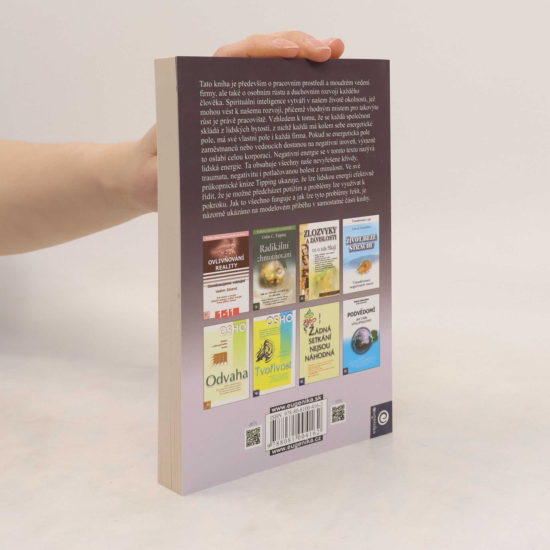 Naše spirituální inteligence vytváří v našem životě okolnosti, jež mohou vést k rozvoji, přičemž právě naše pracoviště se zdá být vhodným místem pro takový růst. Každá firma má své vlastní energetické pole, složené z energie všech pracovníků. Ve své průkopnické knize Tipping ukazuje, jak lze lidskou energii efektivně řídit, předcházet potížím a problémy využít k pokroku. Názorně pochopíte, jak to všechno funguje a jak vše řešit, na ilustrativním příběhu v samostatné části knihy.