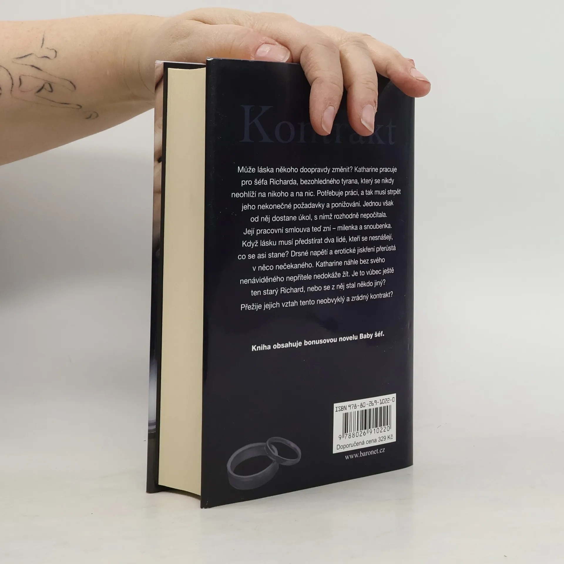 Může láska někoho doopravdy změnit? Katharine pracuje pro šéfa Richarda, bezohledného tyrana, který se nikdy neohlíží na nikoho a na nic. Potřebuje práci, a tak musí strpět jeho nekonečné požadavky a ponižování. Jednou však od něj dostane úkol, s nímž rozhodně nepočítala. Její pracovní smlouva teď zní – milenka a snoubenka. Když lásku musí předstírat dva lidé, kteří se nesnášejí, co se asi stane? Drsné napětí a erotické jiskření přerůstá do něčeho nečekaného. Katharine náhle bez svého nenáviděného nepřítele nedokáže žít. Je to vůbec ještě ten starý Richard, nebo se z něj stal někdo jiný? Přežije jejich vztah tento neobvyklý a zrádný kontrakt? Kniha obsahuje bonusovou novelu Baby šéf.