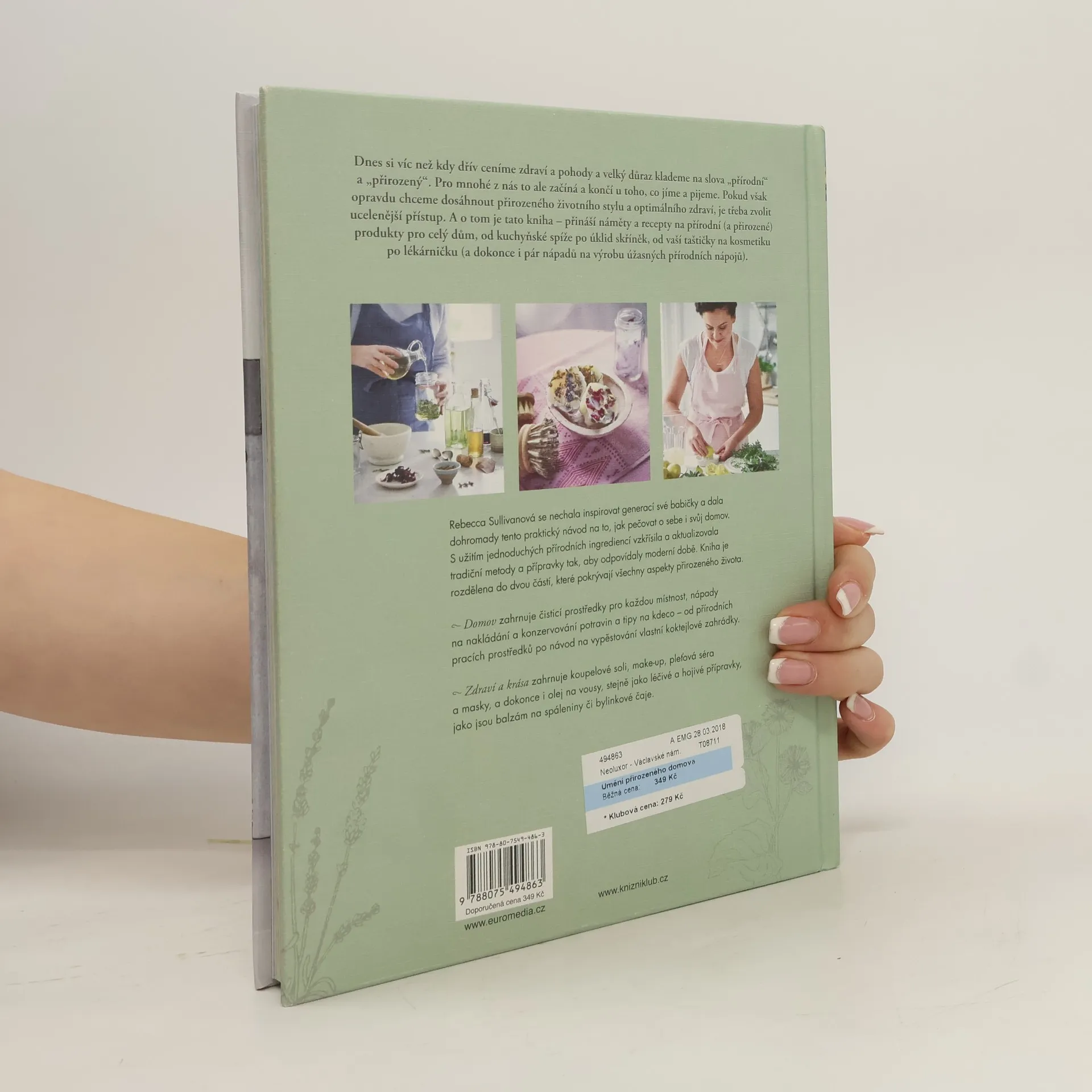 Dnes si víc než kdy dřív ceníme zdraví a pohody a velký důraz klademe na slova „přírodní“ a „přirozený“. Pro mnohé z nás to ale začíná a končí u toho, co jíme a pijeme. Pokud však opravdu chceme dosáhnout přirozeného životního stylu a optimálního zdraví, je třeba zvolit ucelenější přístup. A o tom je tato kniha – přináší náměty a recepty na přírodní (a přirozené) produkty pro celý dům, od kuchyňské spíže po úklid skříněk, od vaší taštičky na kosmetiku po lékárničku (a dokonce i pár nápadů na výrobu úžasných přírodních nápojů).