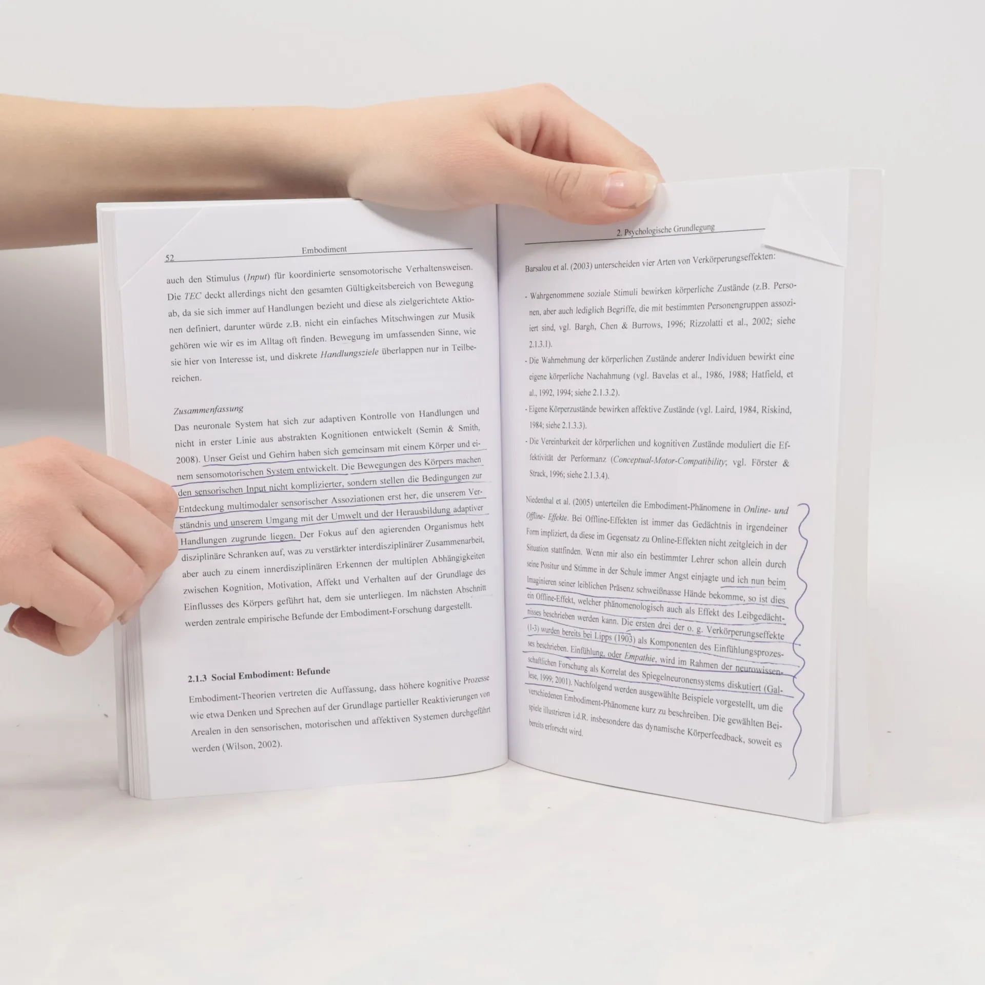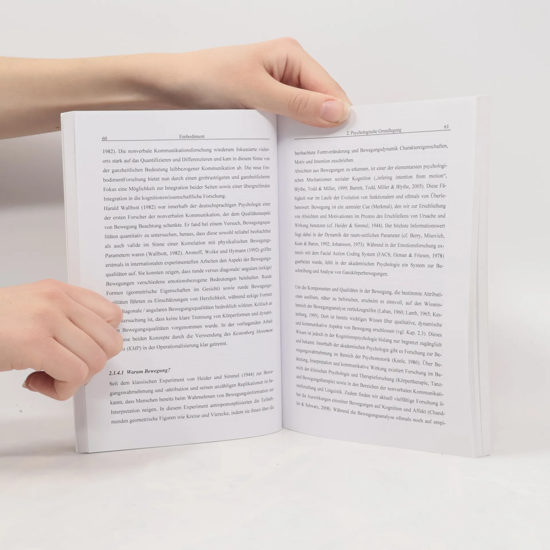 Diese Arbeit beschäftigt mit zentralen Prinzipien des Embodiment of Mind, wie sie sich in den Auswirkungen von motorischem Verhalten auf Kognition und Affekt manifestieren. Sie untersucht den Einfluss von Eigenbewegung auf Affekt, Einstellung, Wahrnehmung, Repräsentation, Gedächtnis und Verhalten. Dabei betrachtet sie den Hintergrund der Kinästhetik und deren Bedeutung zunächst theoretisch, dann empirisch. Es werden erstens theoretische Annahmen kritisiert und erweitert, zweitens konkrete Vorhersagen zu affektiven, attitudinalen und kognitiven Veränderungen durch Bewegung und dynamisches Körperfeedback abgeleitet und überprüft und drittens in praxisbezogenen Studien die Verbindung zum klinisch-therapeutischen Anwendungsbereich hergestellt -- insbesondere zu BodyMind Ansätzen, künstlerischen und bewegungstherapeutischen Verfahren. Es finden sich Einflüsse von menschlicher Bewegung auf Affekt, Einstellungen und Gedächtnis, die abschließend diskutiert und integriert werden.