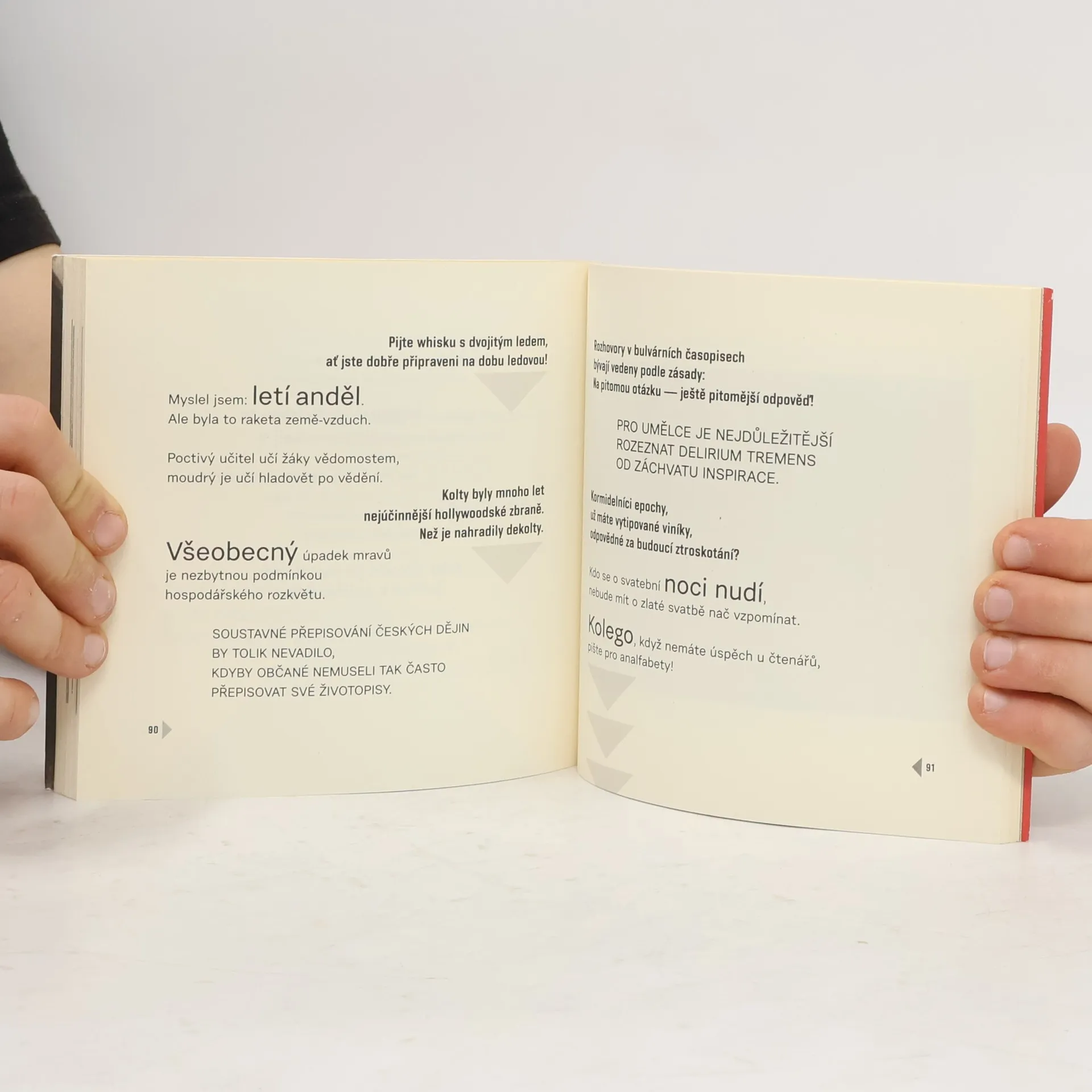 Jiří Žáček o své nové knize: „Mé lepší já, idealista a filantrop, mě nabádá k ušlechtilým činům a hustí do mě všemožné pravdy, ponaučení a moudra. Něčím tak nepatrným a malicherným, jako jsou aforismy, by se nezabývalo. Aforismy vymýšlí ten poťouchlý skeptik ve mně, který na veškeré pravdy a moudra pohlíží nedůvěřivě a s podezřením. Aforismy mají tu přednost, že jsou stručné. Šetří čas. A když jsou to myšlenky řečené s espritem a vtipem, není divu, že nacházejí své věrné čtenáře. A proč aforismy píšu? Prostě mě čas od času napadají, já jsem pouhý zapisovač a někdy je zaznamenávám i pomocí fotografie a slov.“