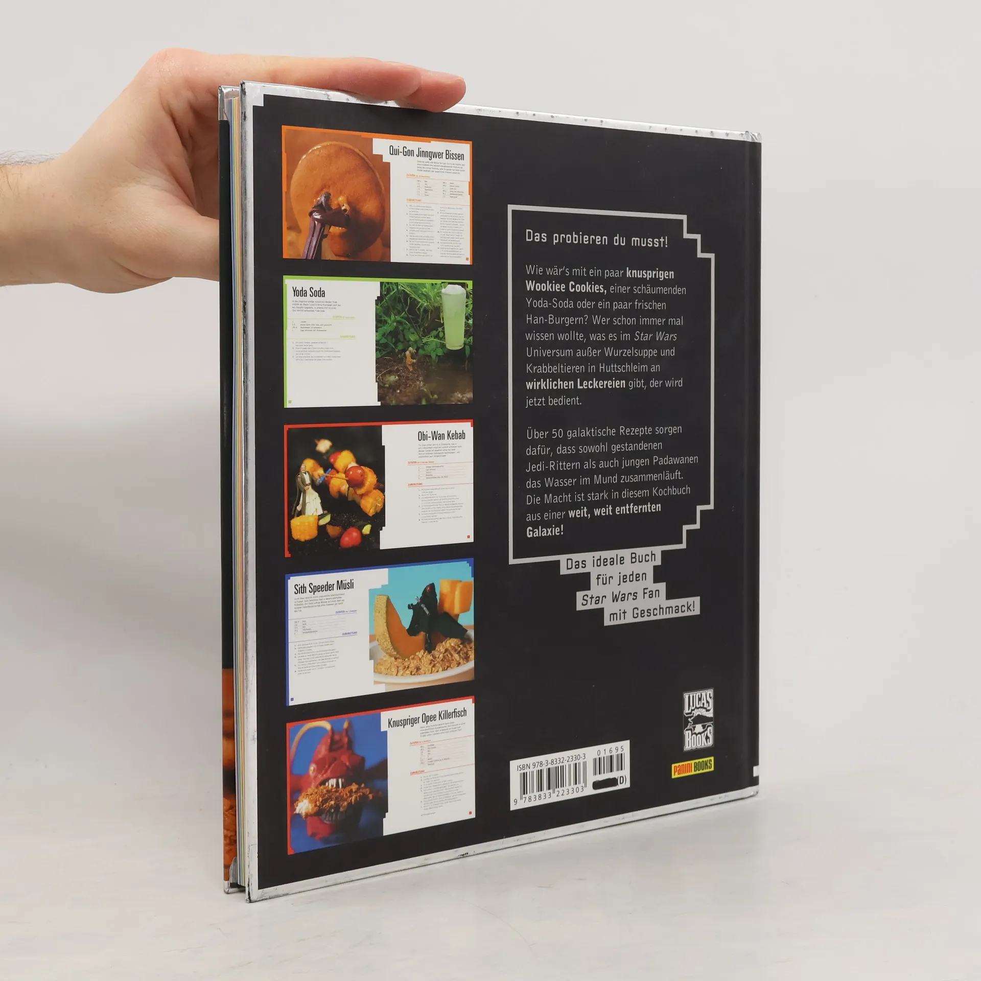 Mit diesen original Star Wars-Backformen lassen sich im Handumdrehen die leckersten Knabbereien aus einer weit, weit entfernten Galaxie zubereiten! Von Schoko-Chewies und Jawackler bis hin zu Landonuts und Mos Eisley-XXL Pralinen bietet dieses wahrlich galaktische Kochbuch kinderleichte Rezepte für delikate Snacks, leckere Drinks und süße Verführer, denen selbst ein gestandener Jedi-Meister nicht widerstehen kann.